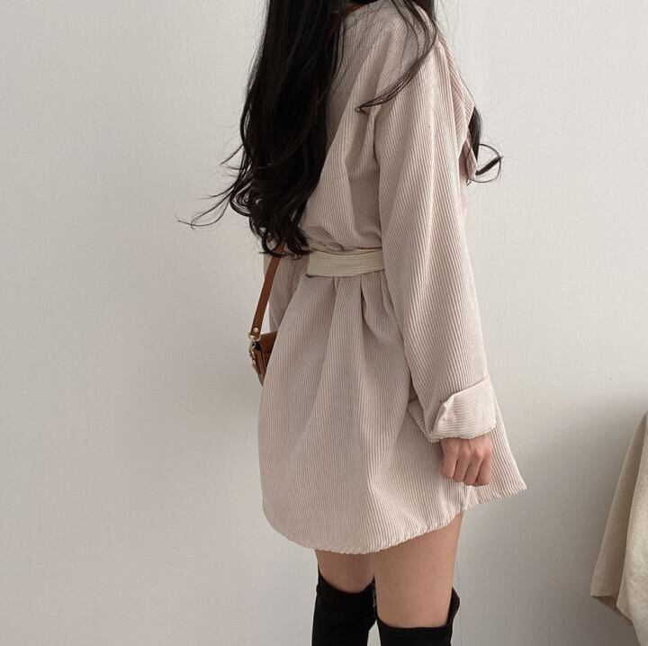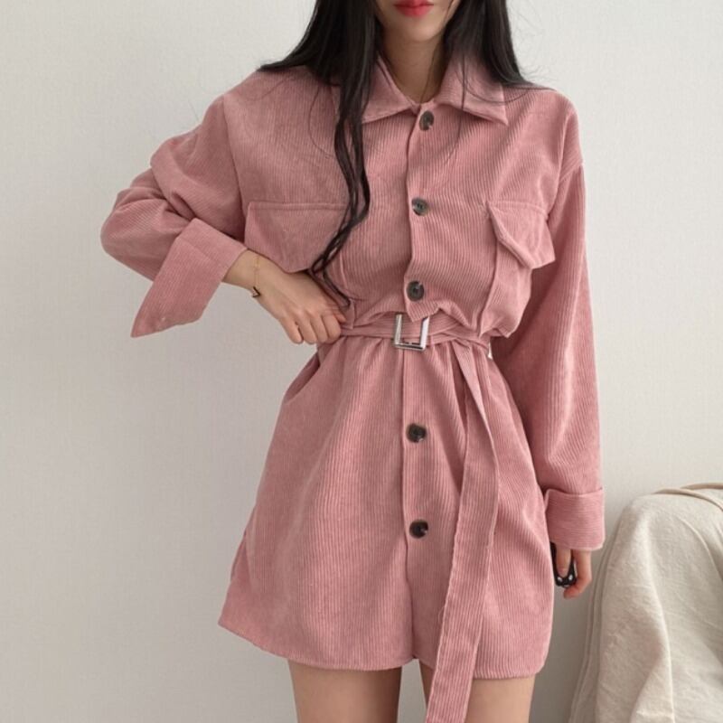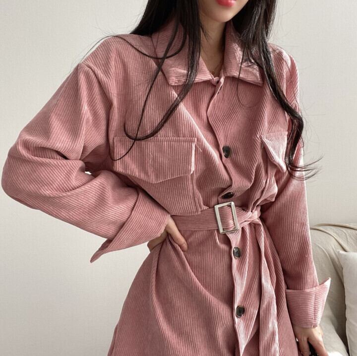 コーデュロイドレス スプリングオータムスタイルダブルポケットシングルブレストスカート 春物 秋物 韓国婦人74331651865