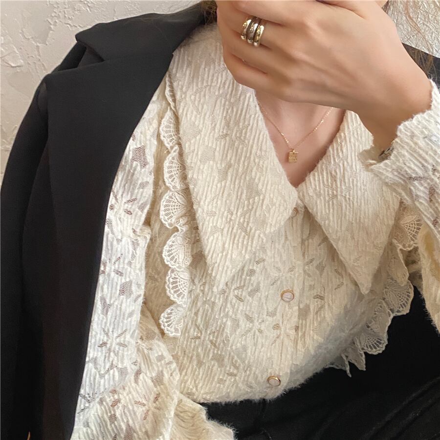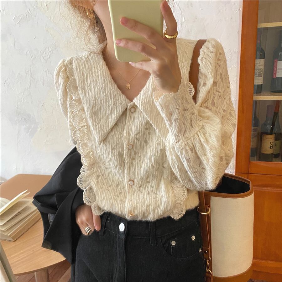 スプリングレースFlowerデザイン スリーブシャツ レディース 春物 フラワーデザイン ステッチ 韓国婦人20714625372