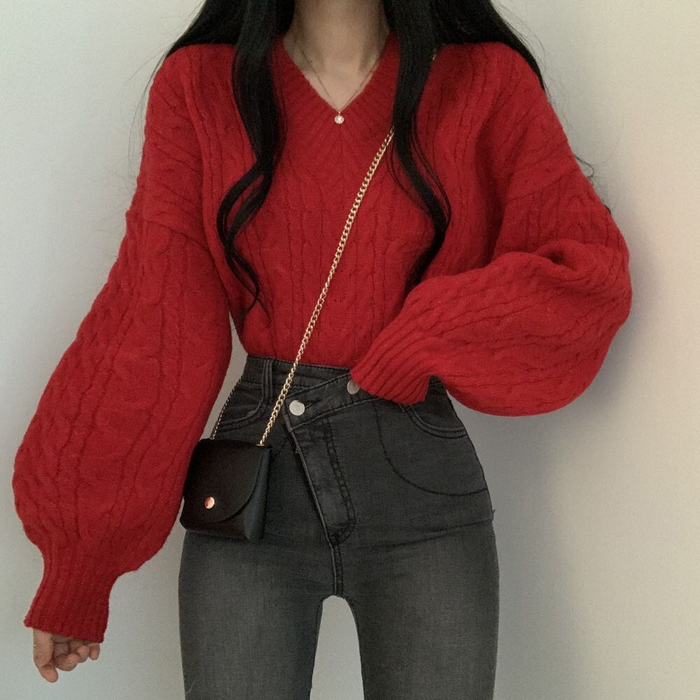 スタイルVネックスリーブルーズセーター ランタンスリーブ 韓国婦人40808087352