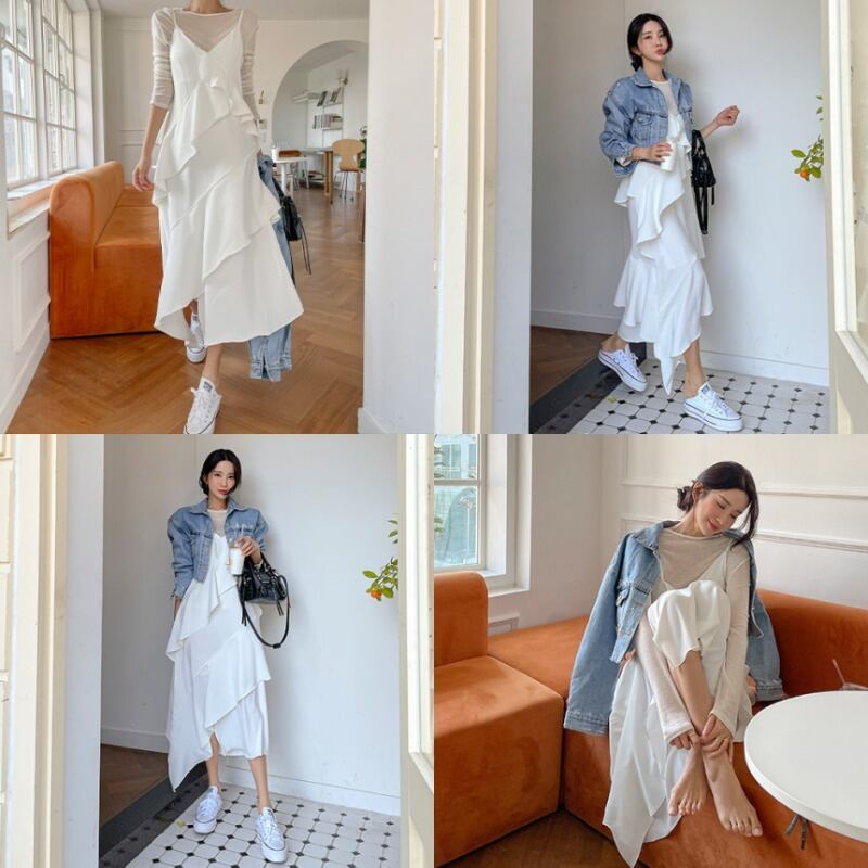 サマーVネックドレス 大人ガーリー スウィート キュート カジュアル 夏物 韓国婦人97401298664