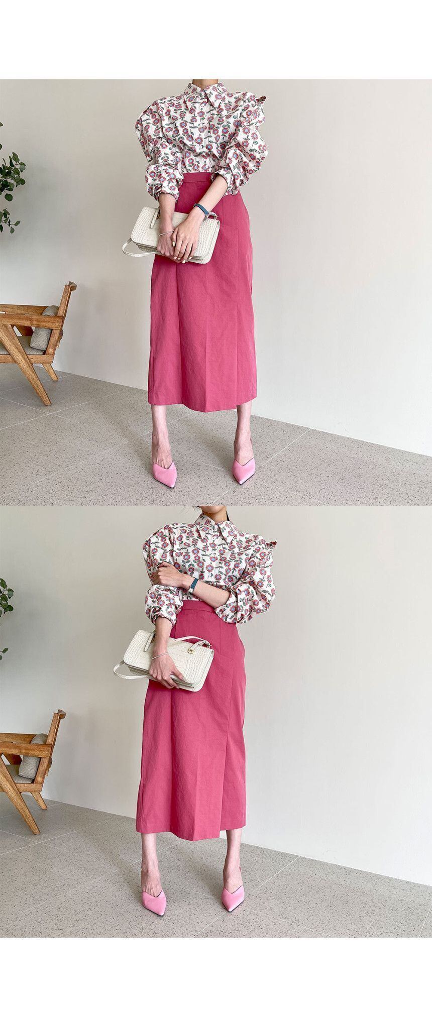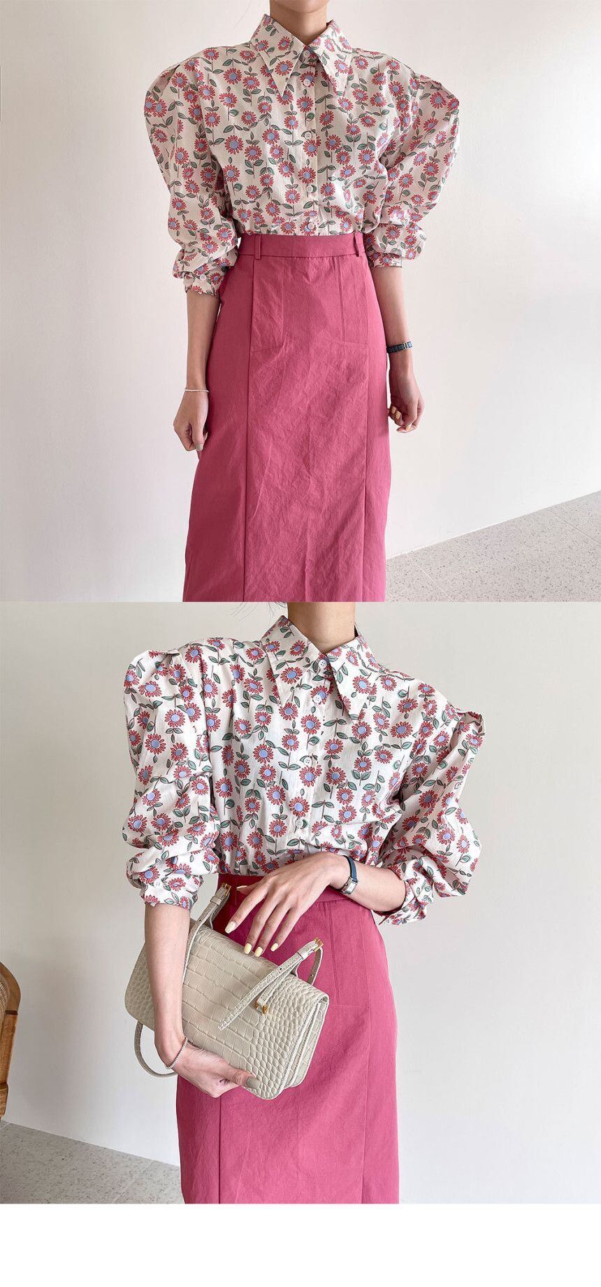 スタイルスリーブプリントシャツ ロングスカート サマー 夏物 韓国婦人19221314419