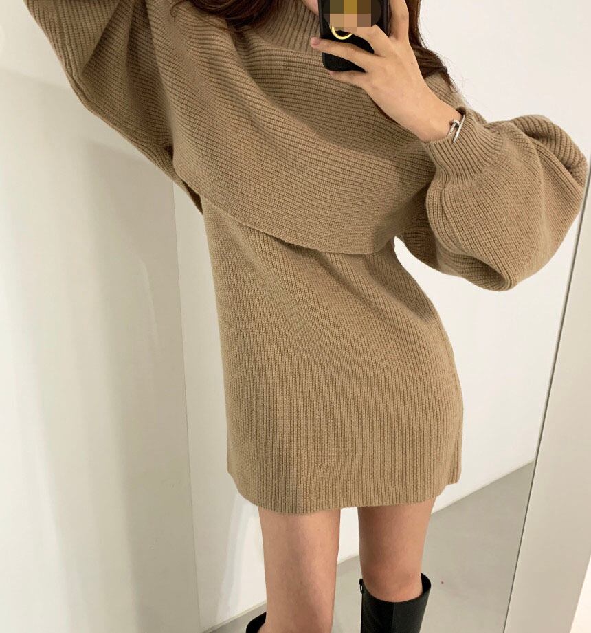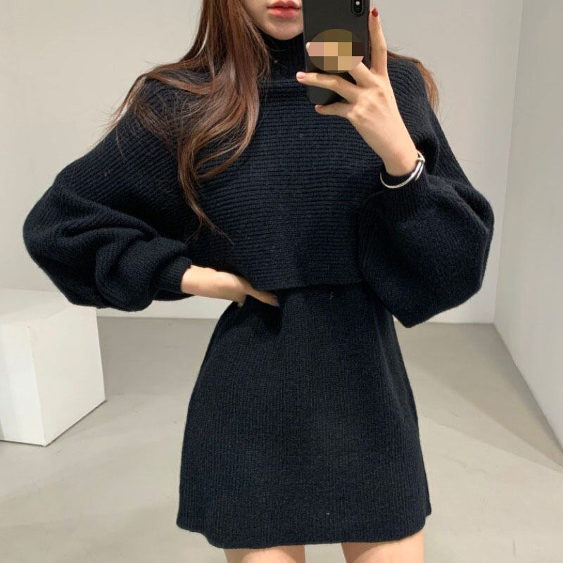 ウィンターニットドレス スリーブセーター ランタンスリーブ 冬物 韓国婦人14471199646