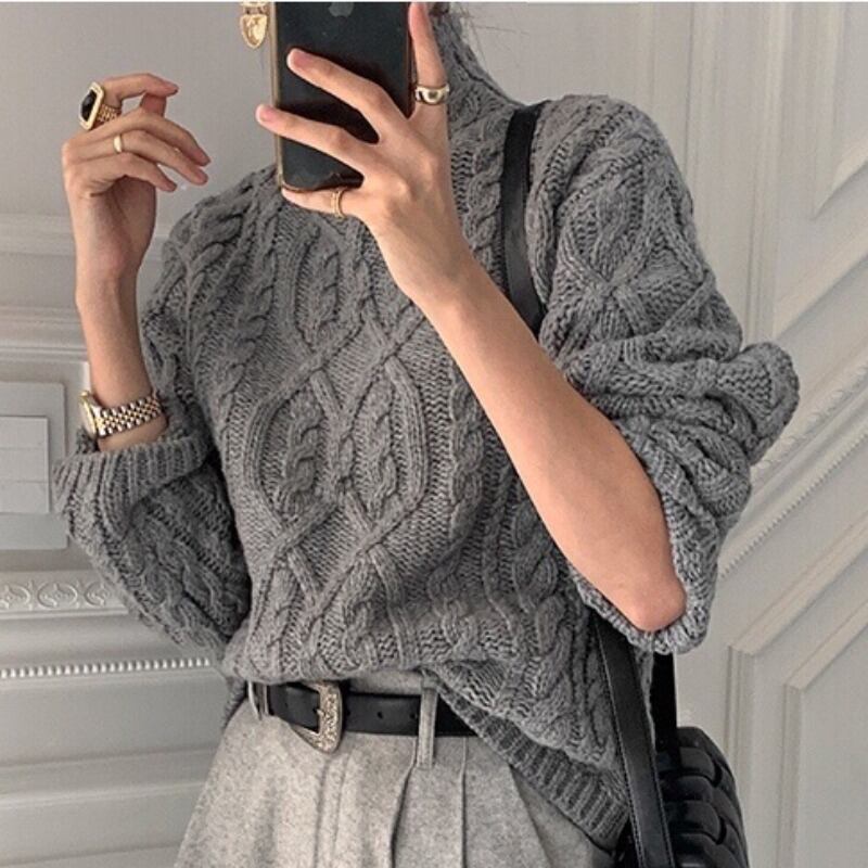 ルーズ薄手ニットセーター レディーススプリングオータムスタンダードプルオーバー レトロ 春物 秋物 韓国婦人97079170890