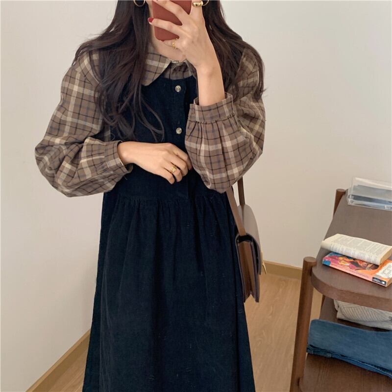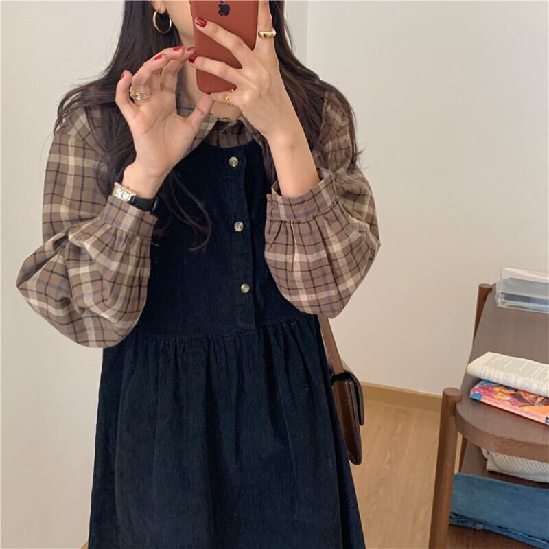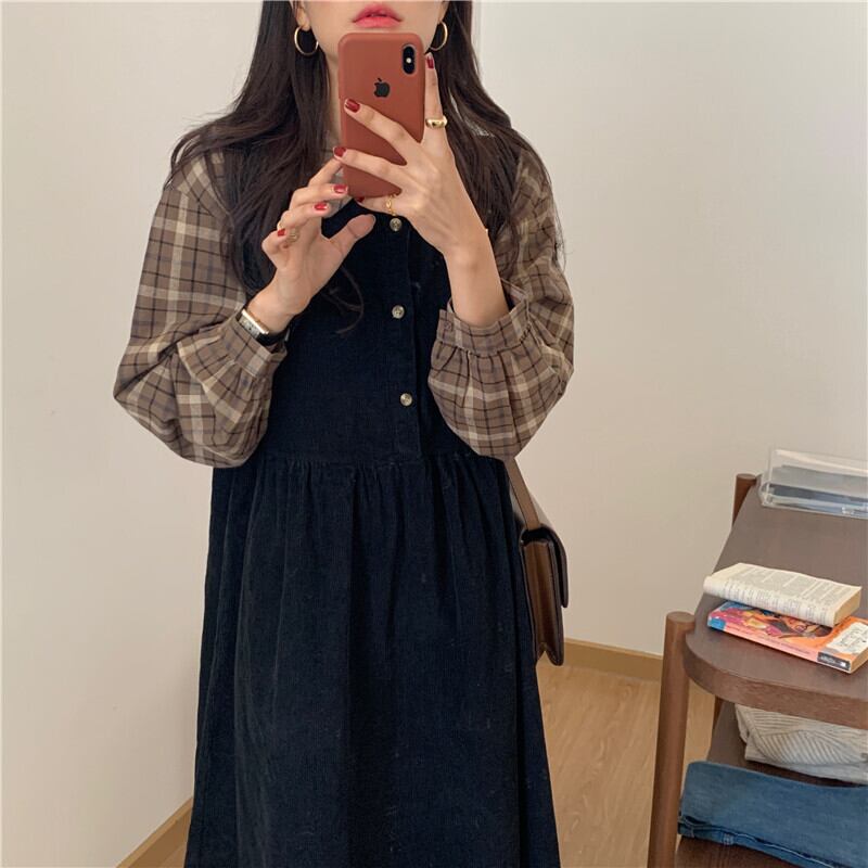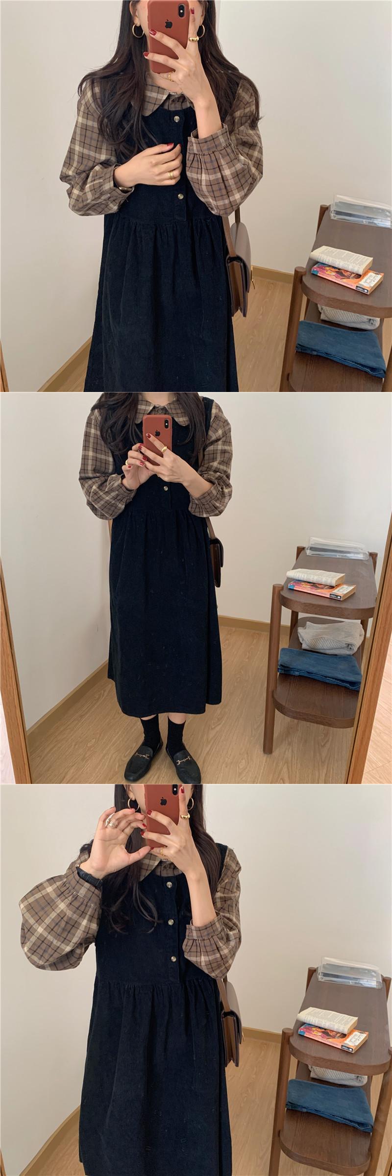 スタイルボタンコーデュロイスカート ドレス 韓国婦人49253060513