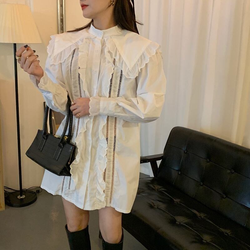 レースカラースカート スプリングドレス ロング 春物 韓国婦人8667168838