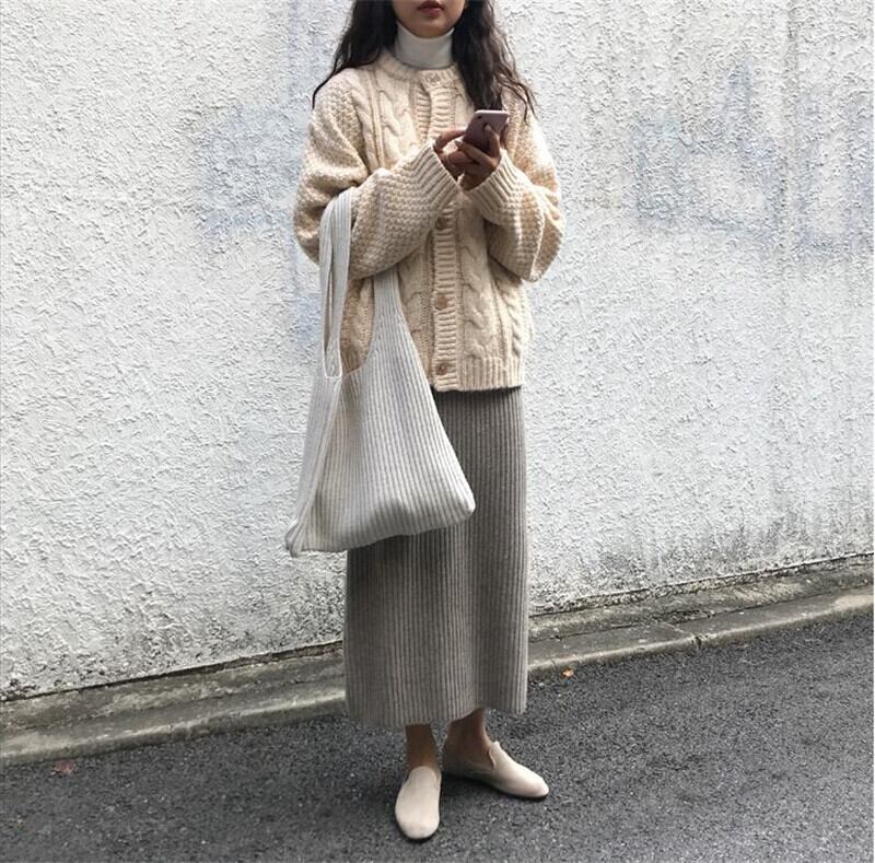 ラウンドネックニットカーディガンジャケット オータムウィンタースタンダードセーター ロング レトロ 秋物 冬物 Oネック 韓国婦人48046703850