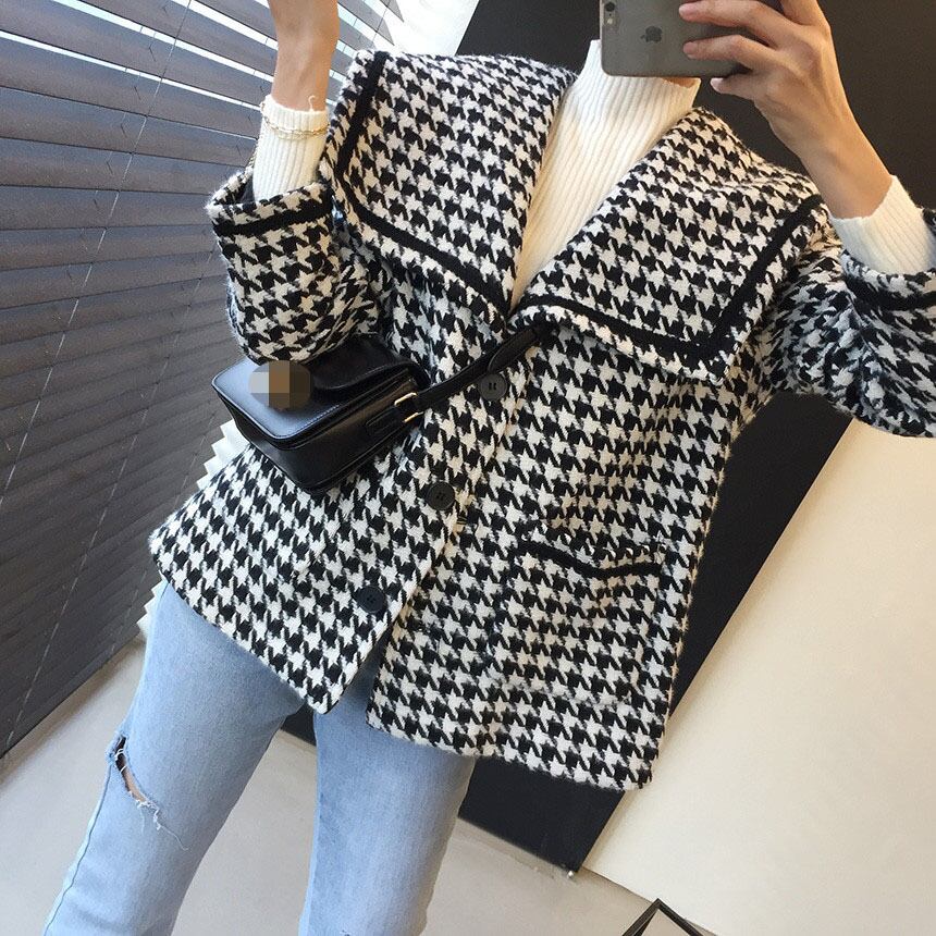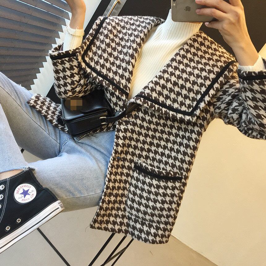 オータムウィンタースタンダードネイビーカラールーズポケットショートコート レトロ 秋物 冬物 韓国婦人91748785540
