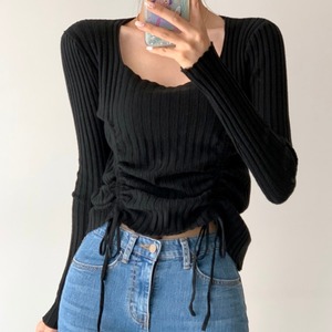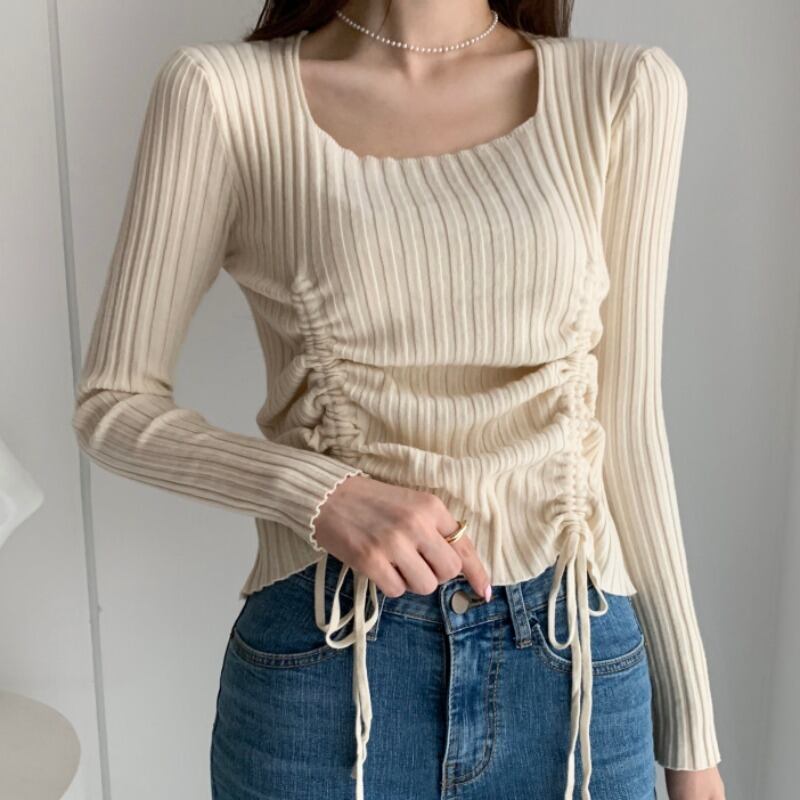 ニットセーター オータムスタンダードギャザースリムトップス レトロ 秋物 スクウェア 韓国婦人47455468081