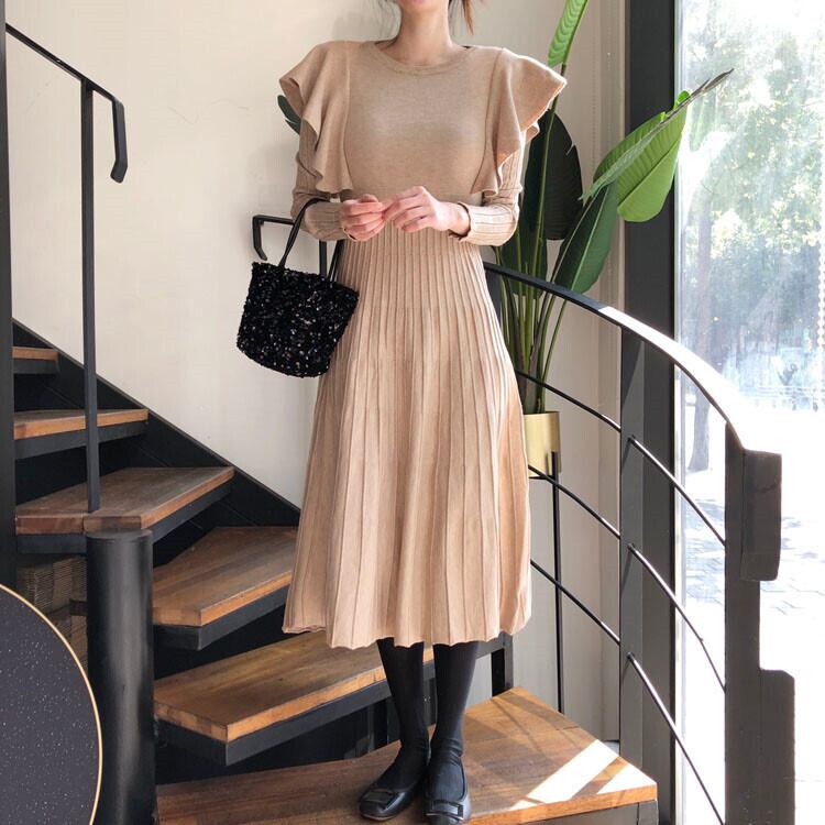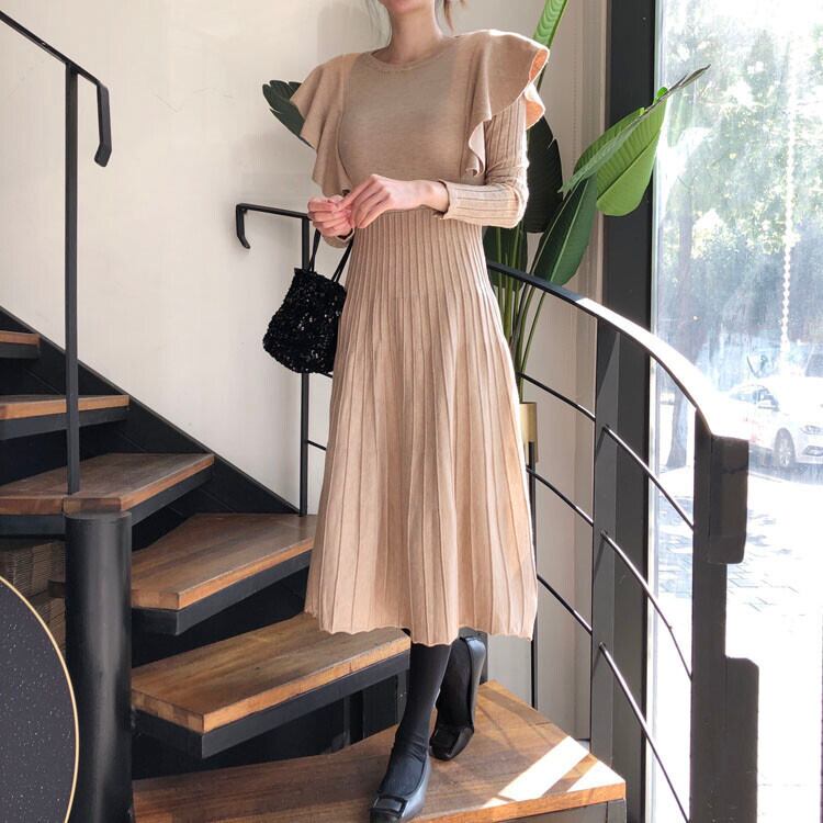 オータムウィンターウェストベルト ニットドレス レディース エレガント 秋物 冬物 ハーネス 韓国婦人33624303956