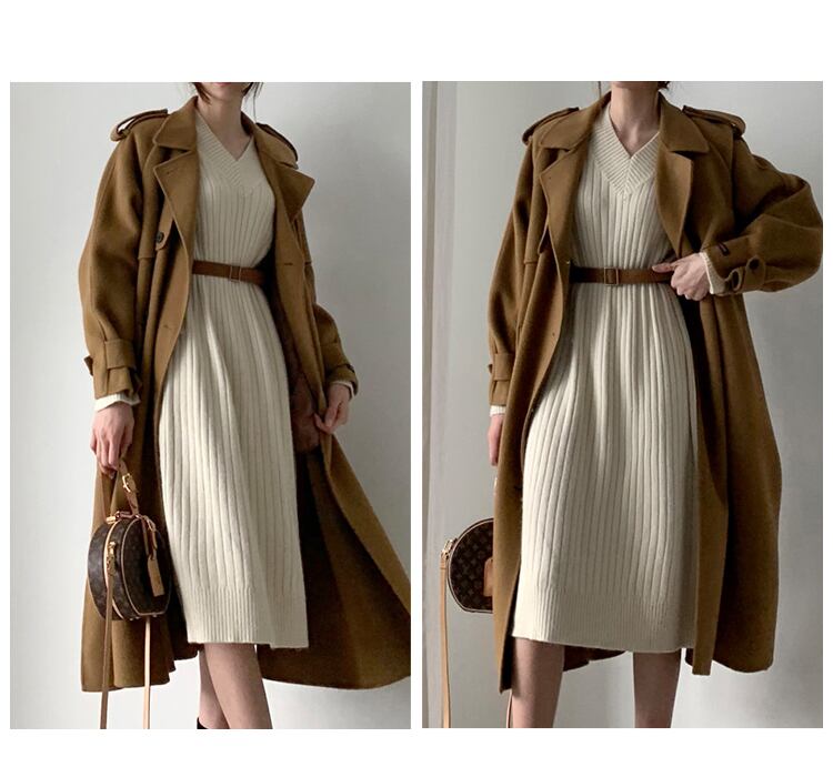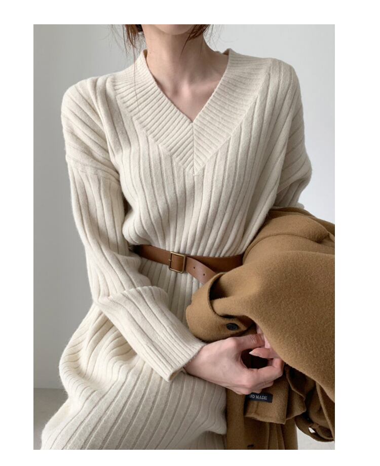 ニットドレス レディーススプリングオータムVネックセーター スカート 春物 秋物 韓国婦人73097530038