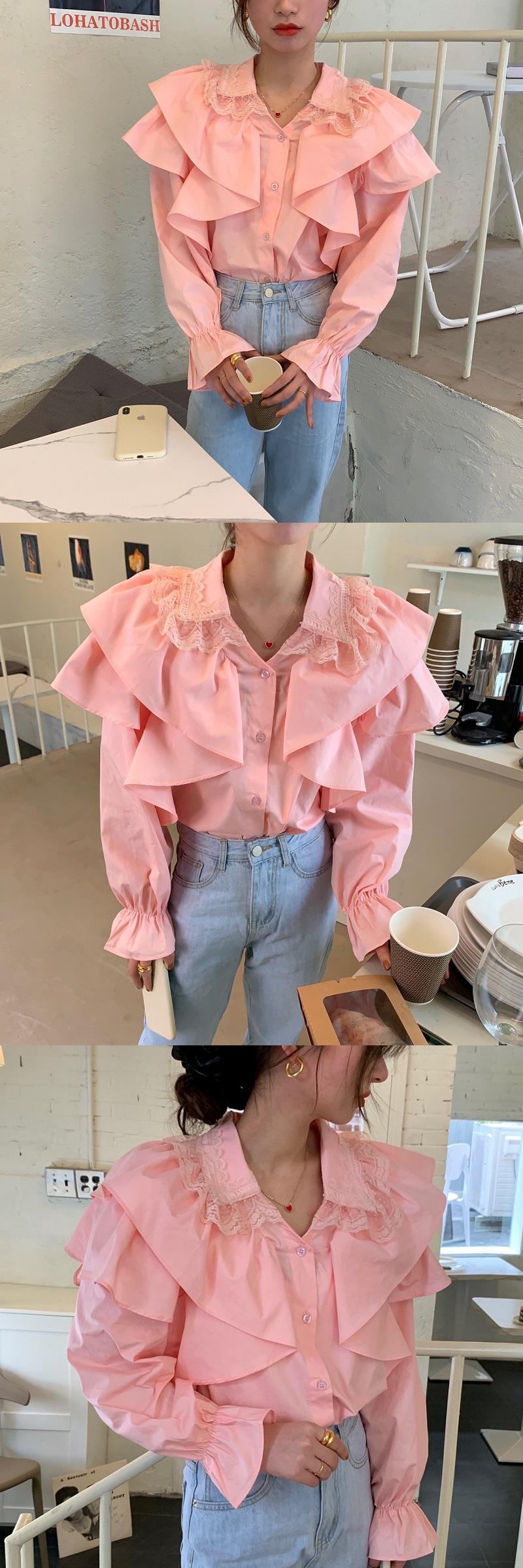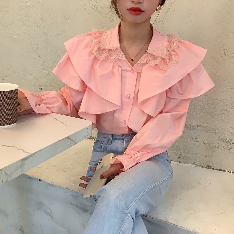 レースシャツ スリーブトップス スプリングオータム 春物 秋物 ステッチ 韓国婦人64684064056