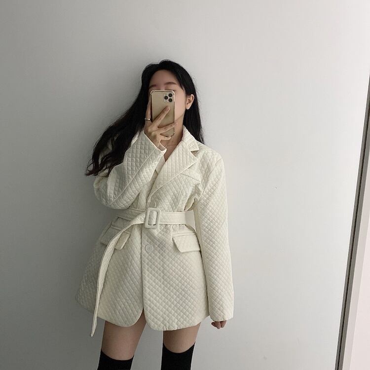 カラー格子柄ルーズジャケット レディース ロング コットン 韓国婦人51890131515