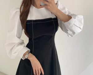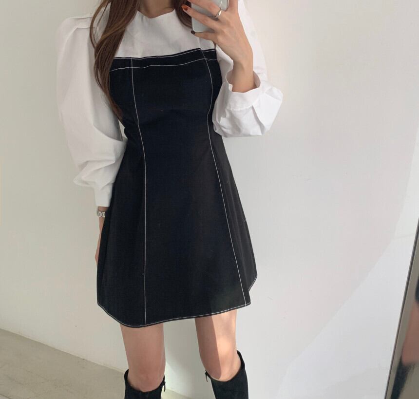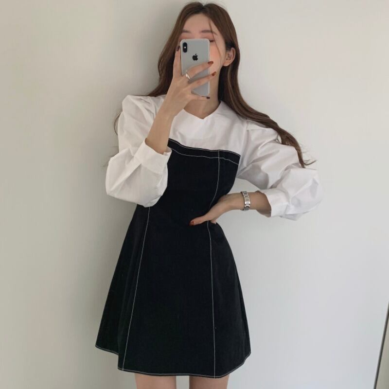 スプリングレッドラインカラーウェストドレス 春物 韓国婦人68092169821