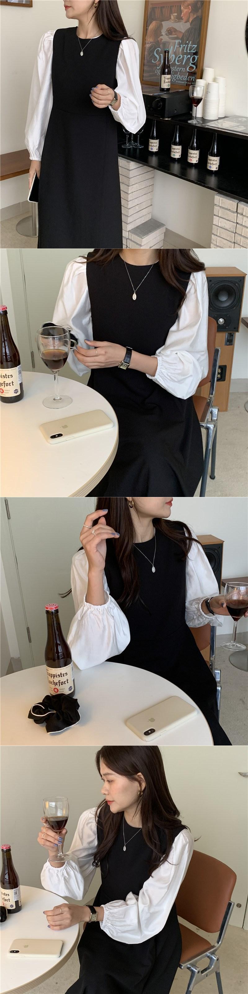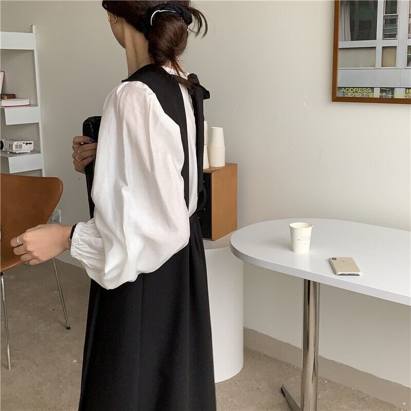 スプリングスタンダードスタイルワンピースドレス ソリッド カラースリーブシャツ セット レトロ 春物 ソリッドカラー 韓国婦人35963307826