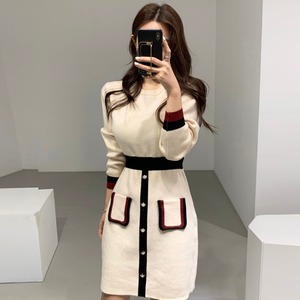 ラウンドネックカラーポケット薄手ウェストドレス ロング Oネック 韓国婦人51589865398