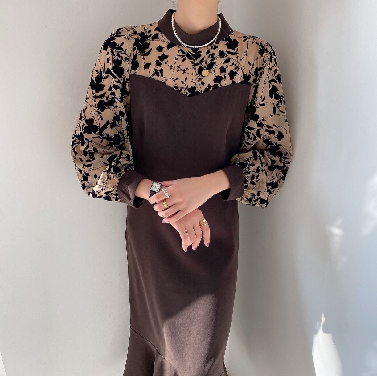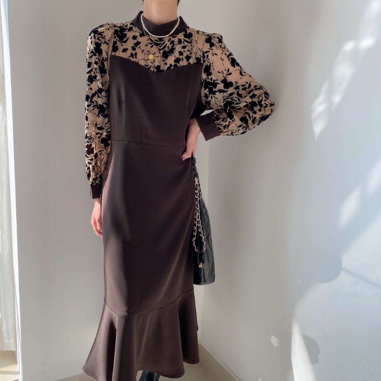 ロングスカート オータムウィンターレースドレス スリム 秋物 冬物 フラワーデザイン ステッチ 韓国婦人58881944301