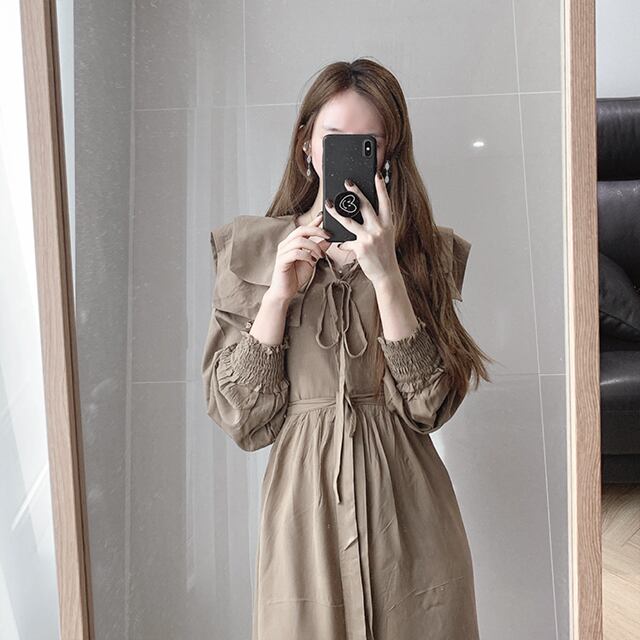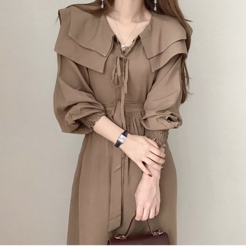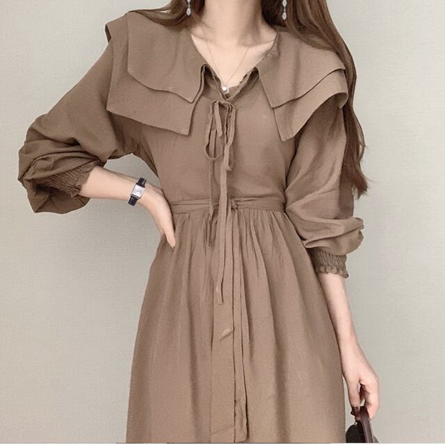 オータムウィンターカラールーズ薄手ロングハイウェストウェストドレス レース 秋物 冬物 レースアップ 韓国婦人50185671002