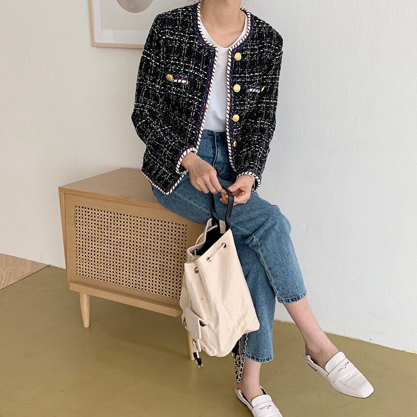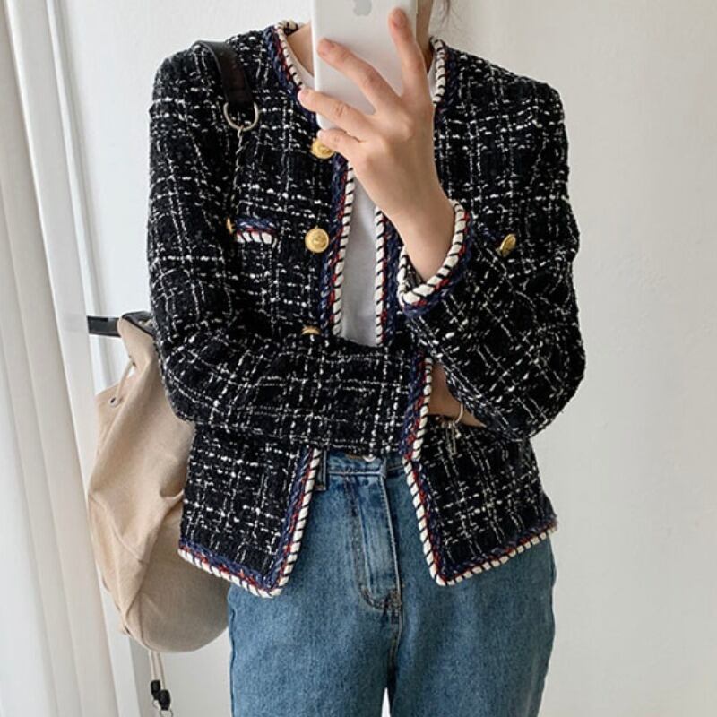 ジャケット スプリングオータムスタンダード薄手ツィードトップス ロング レトロ 春物 秋物 韓国婦人59423097777