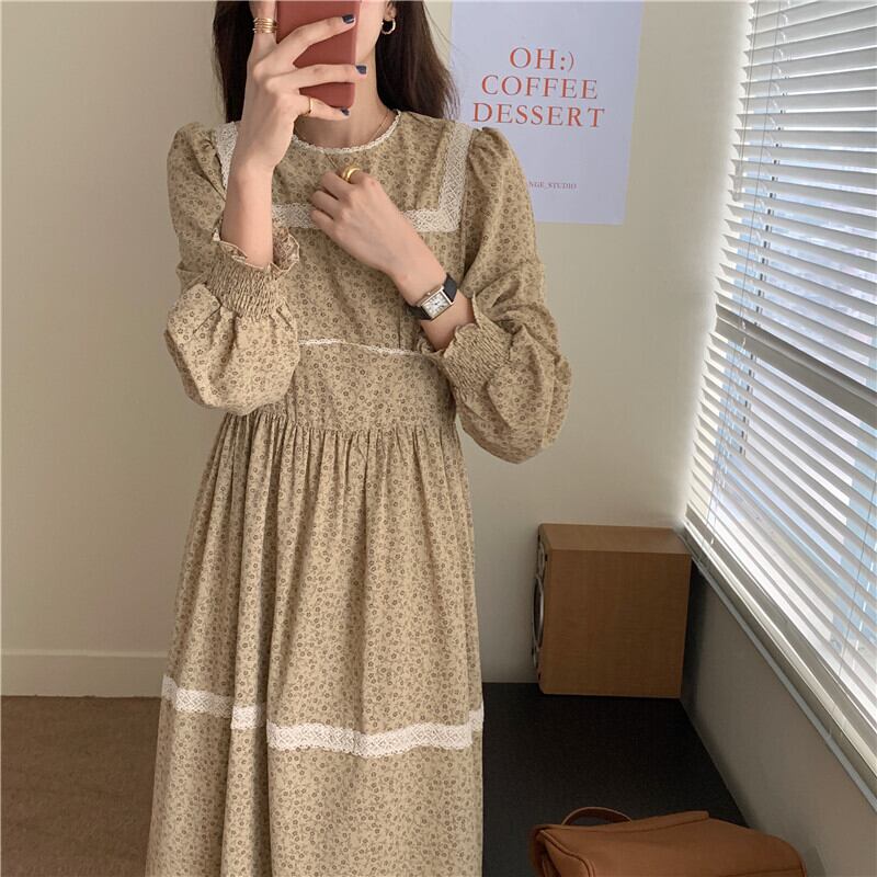 スプリングスタンダードフローラルウェストスリムシフォンドレス ロング レトロ 春物 花柄 韓国婦人10699783498