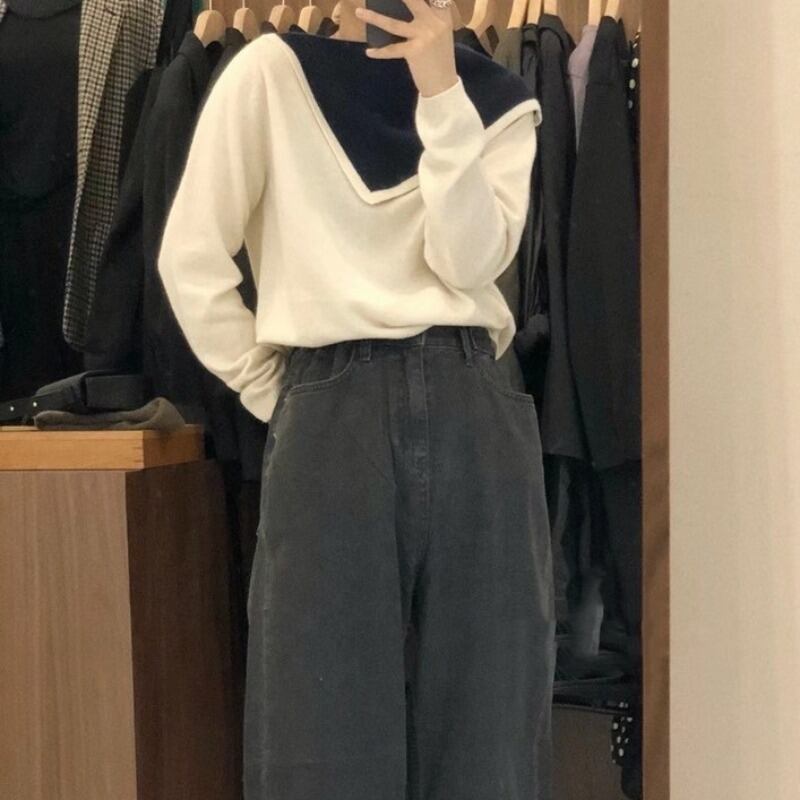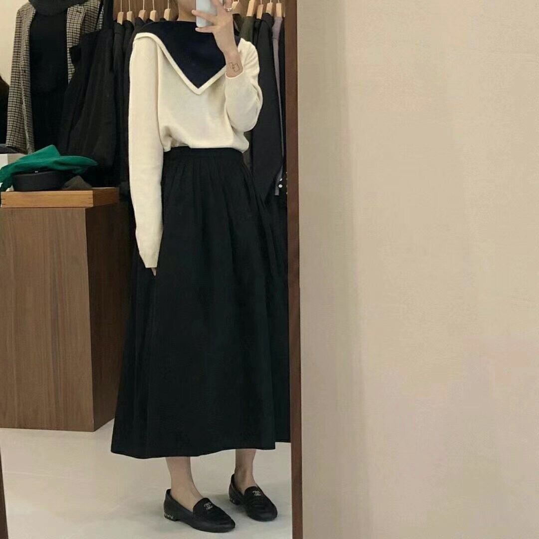 スタイルカラーニットセーター ハイウェストウェストAラインスカート ロング エレガント 韓国婦人64695082477