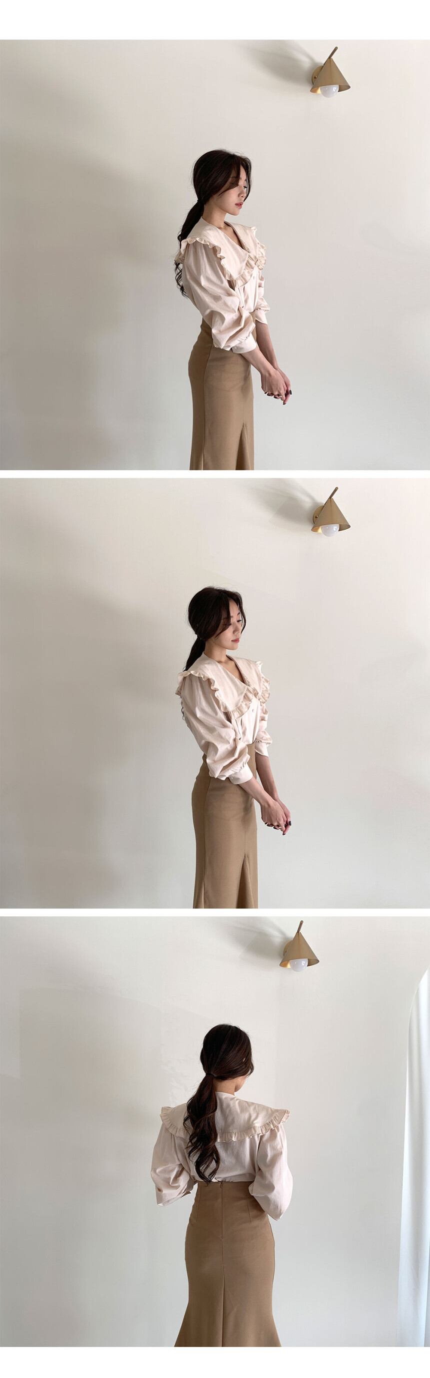 シャツ ハイウェストウェストスカート ロング 韓国婦人58265561037