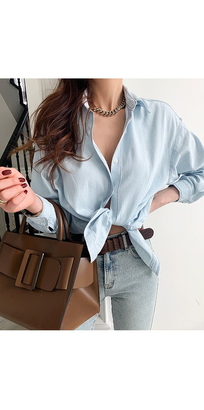 スプリングスタイルカジュアルカラーシャツ トップス ロング 春物 韓国婦人90567153591