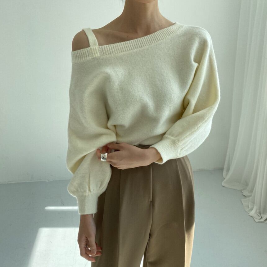 スプリングスタイルストラップレススリーブソリッド カラーセーター トップス レディース 春物 ソリッドカラー 韓国婦人22610763696