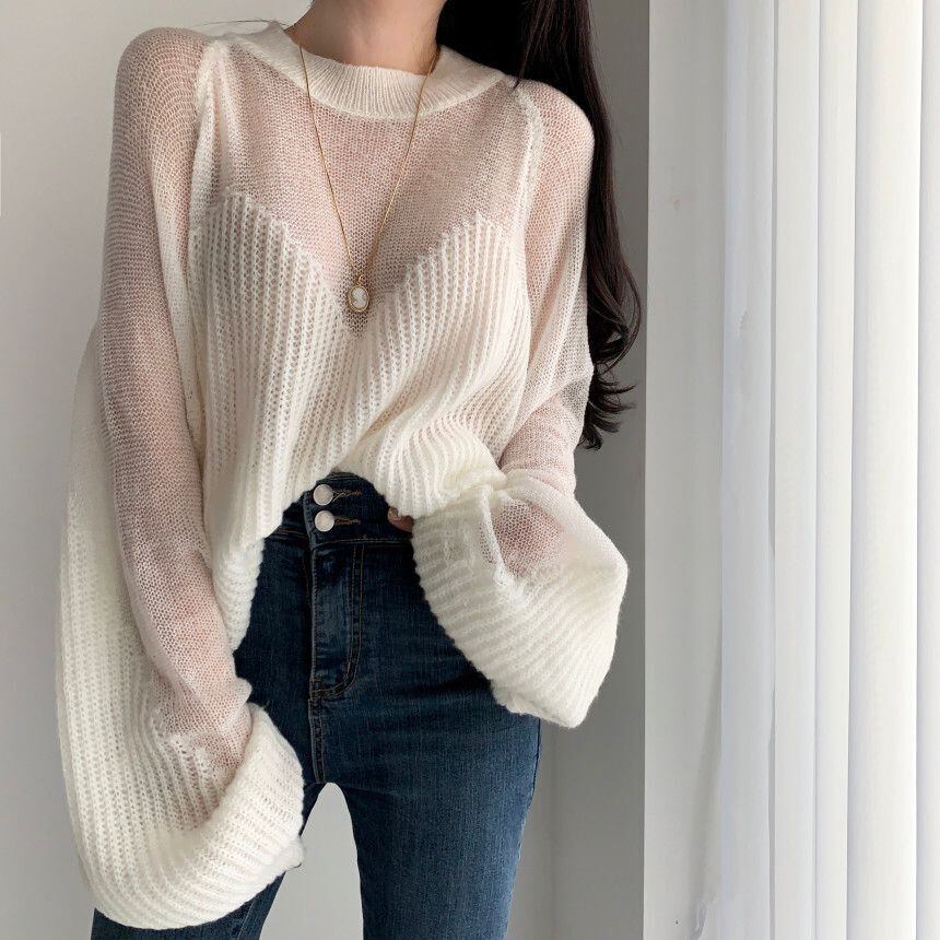 スプリングニットセーター ルーズスリーブプルオーバー スタイル薄手 ランタンスリーブ 春物 韓国婦人48448767314