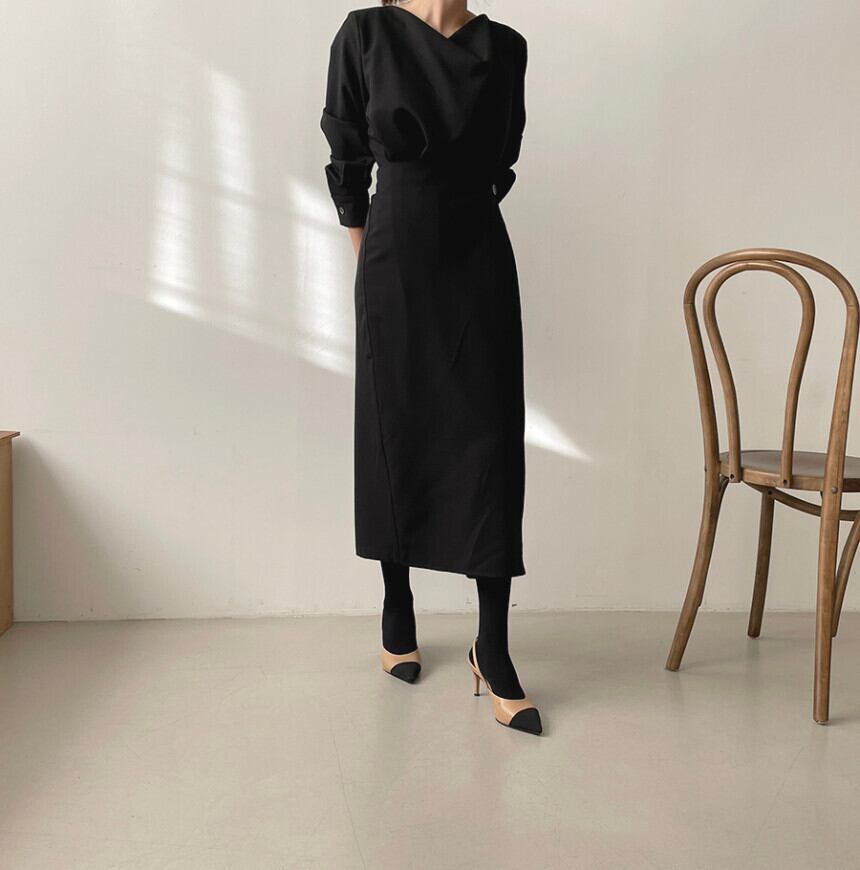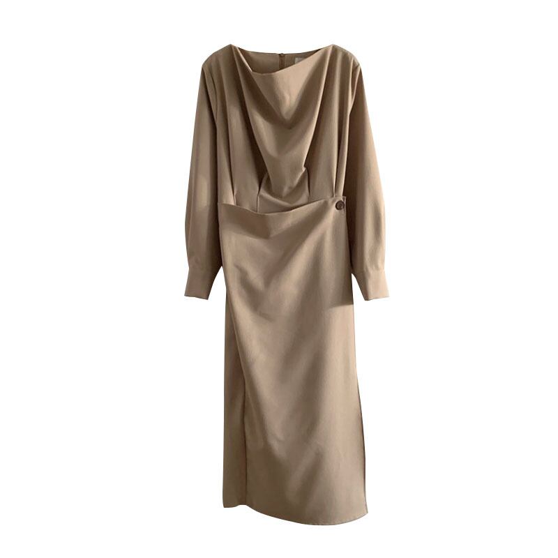 スプリングウェストワンピースロングドレス 春物 韓国婦人70904155392