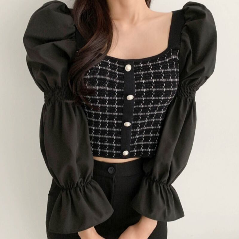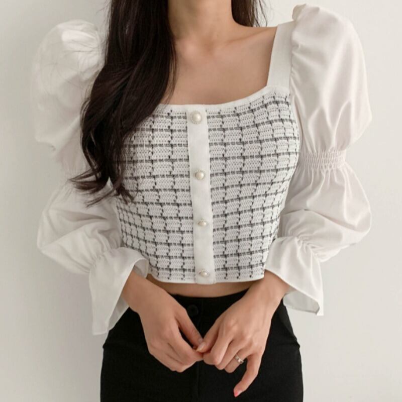 カラーシャツ スプリング格子柄ショートスカート 春物 スクウェア 韓国婦人70853002803