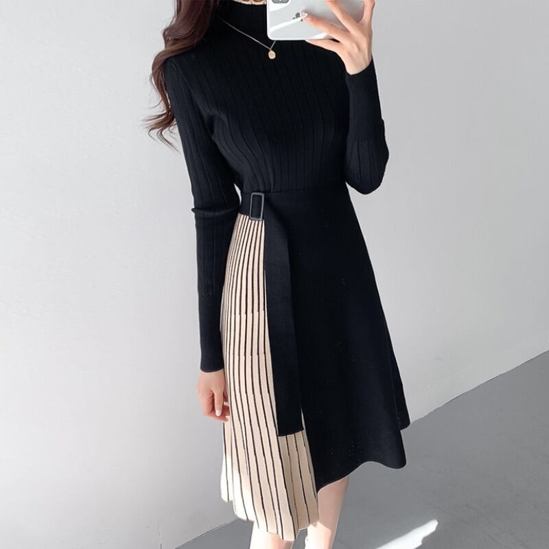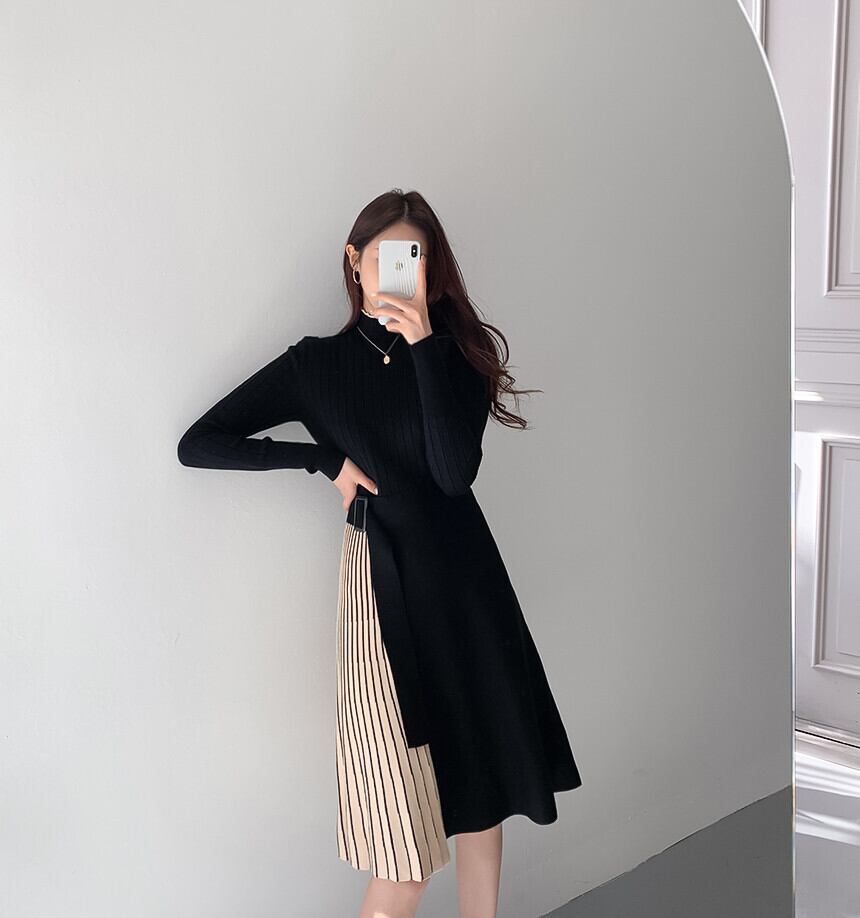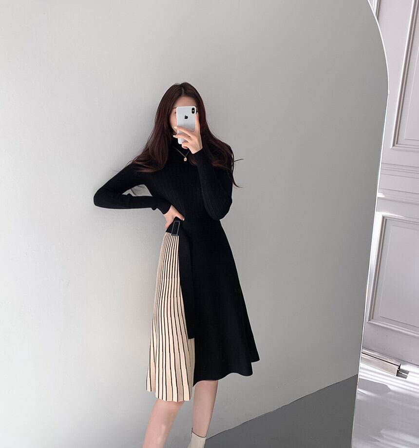 ニットドレス スプリングスリムプリーツスカート ロング 春物 韓国婦人60737536797