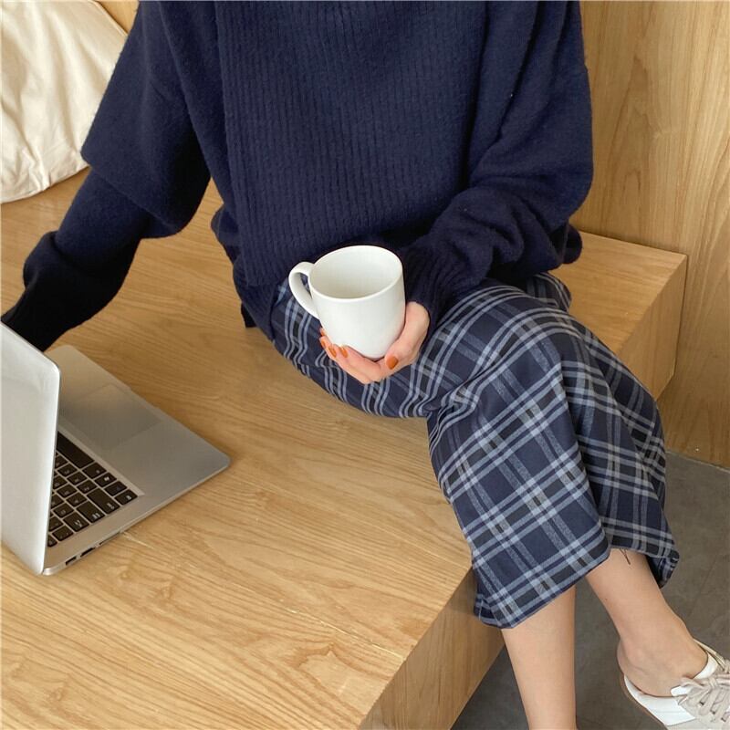 オータム薄手ショートロング格子柄Aライン ハイウェスト 秋物 スカート 韓国婦人58121503158
