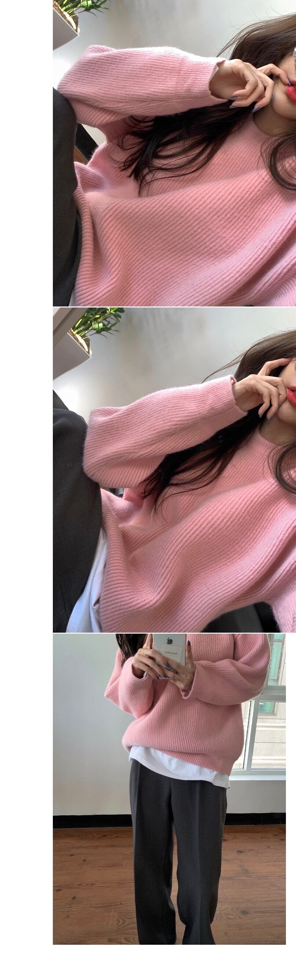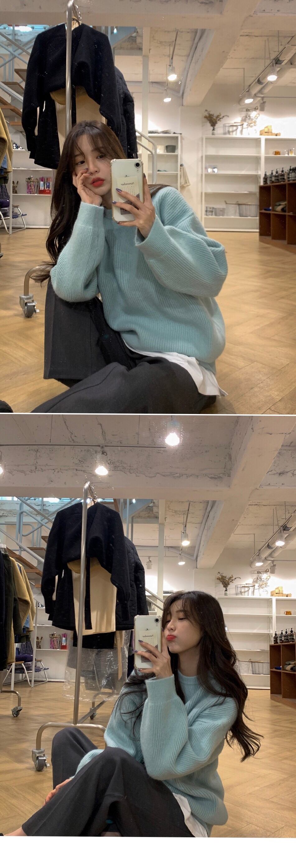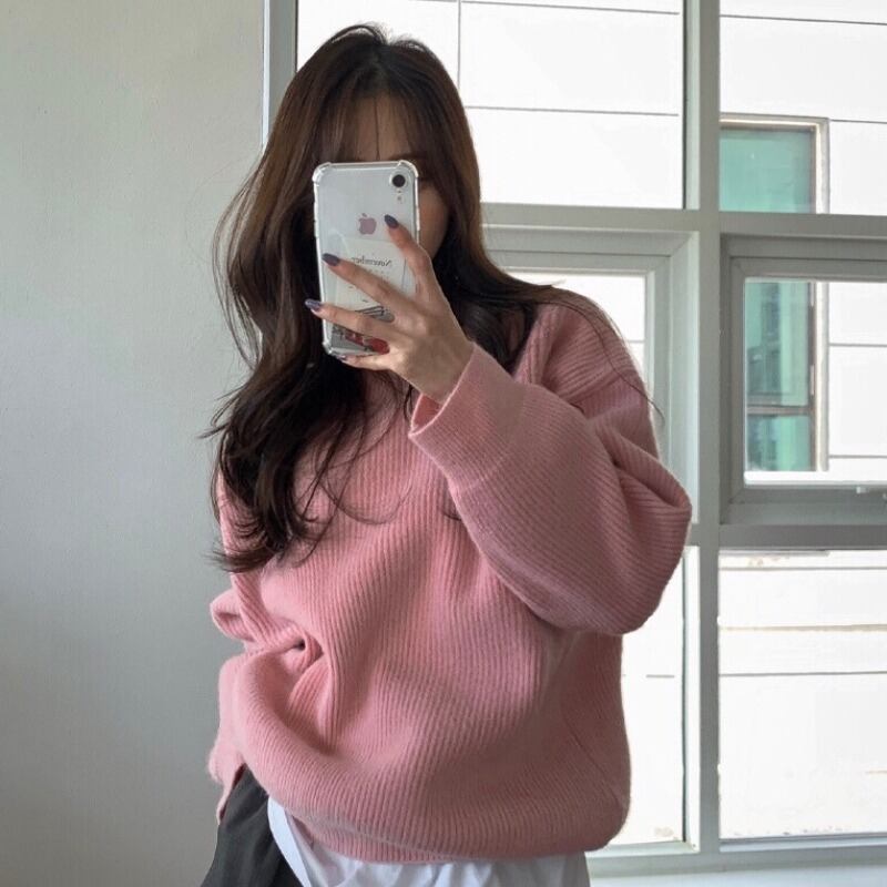 ラウンドネック長袖スリーブルーズプルオーバー セーター ロング Oネック 韓国婦人40471963536
