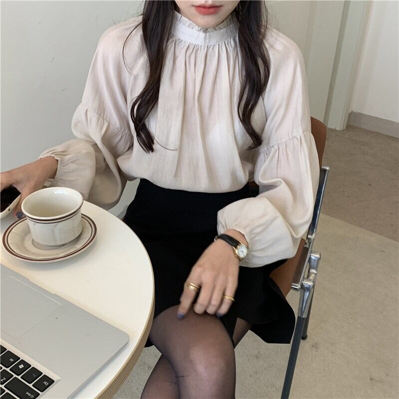 スプリングスタイルレースカラールーズスリムスタンダードシャツ トップス レディース ロング レトロ 春物 韓国婦人52705899458