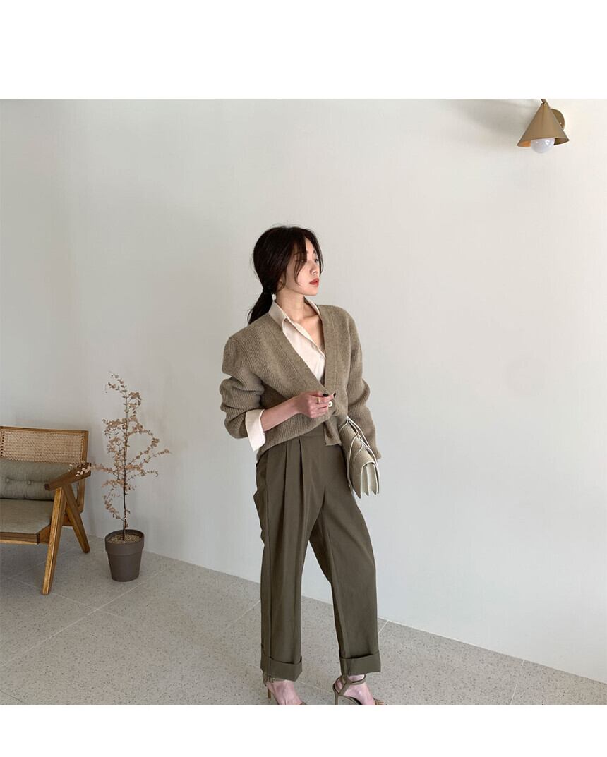 ニットカーディガンセーター スリムハイウェストウェストカジュアルパンツ レディース 韓国婦人81107275669