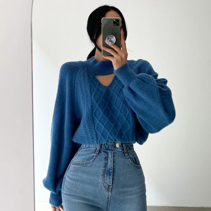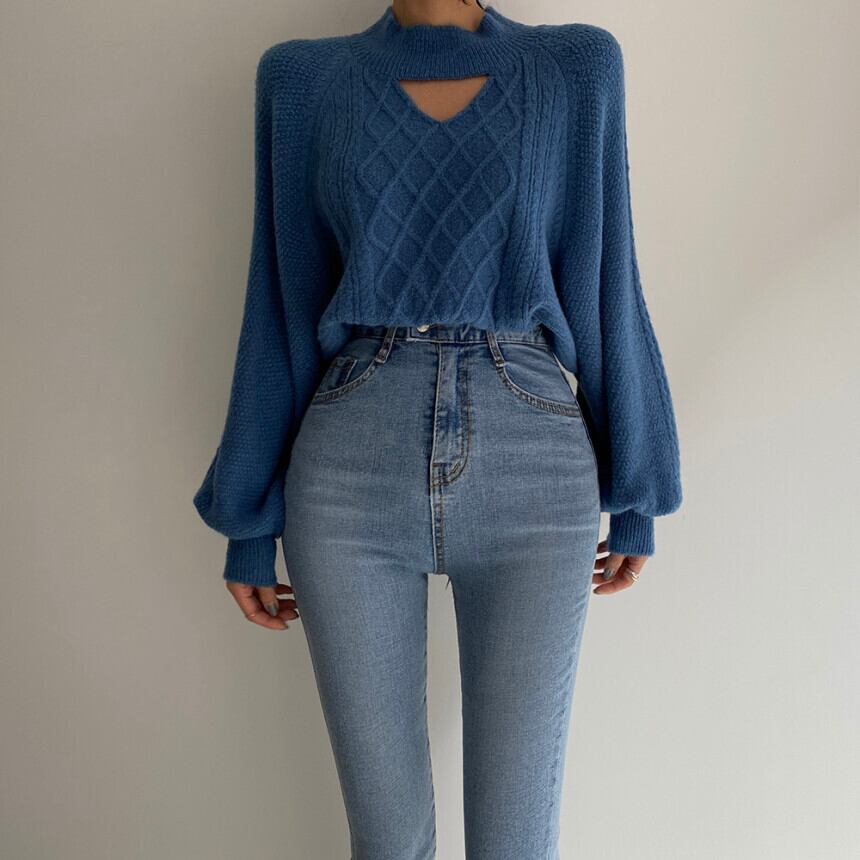スプリングオータムスタンダードトップス スタイルニットセーター スリーブレディース ランタンスリーブ レトロ 春物 秋物 韓国婦人70104300446