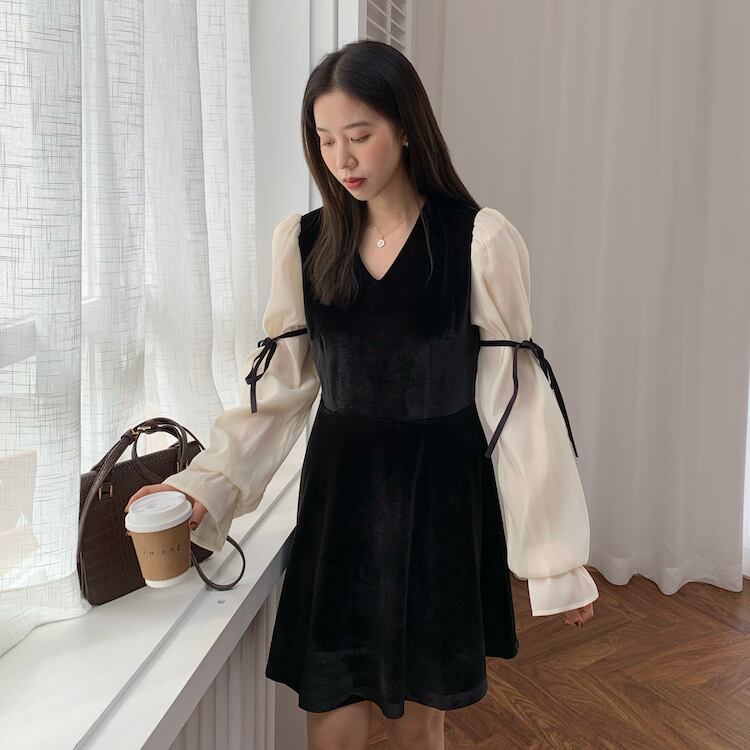スタイル薄手ベルト スカート ショートベルベットドレス ロング ハーネス ステッチ 韓国婦人27360343521