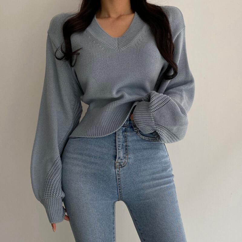 スプリングルーズ薄手ニットトップス ホルタースリーブセーター レディース ランタンスリーブ 春物 韓国婦人32589751161
