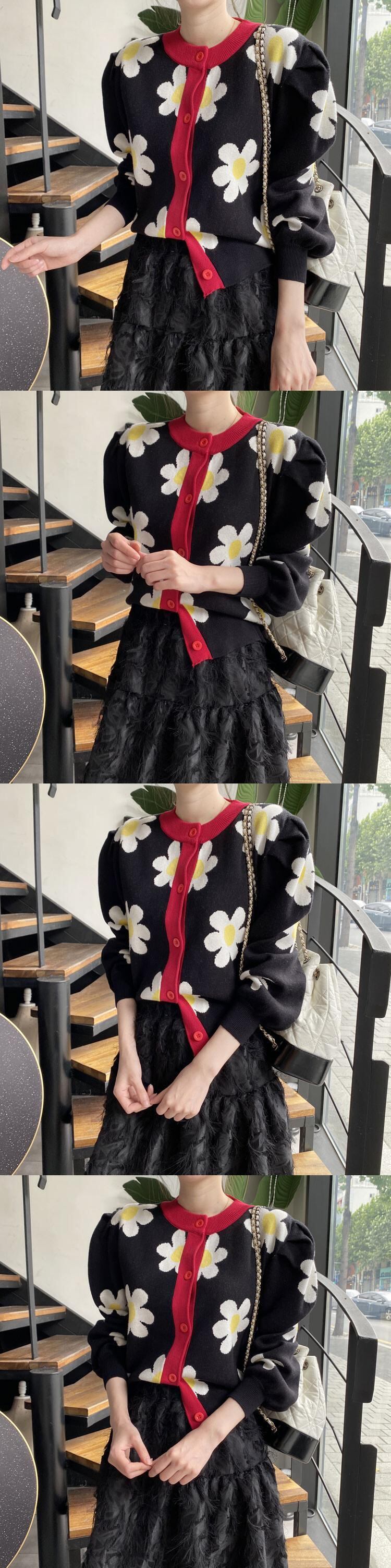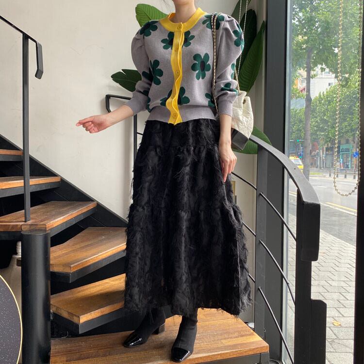 オータムスタイルラウンドネックカラーニットカーディガンセーター 秋物 Oネック フラワーデザイン 韓国婦人41363635580