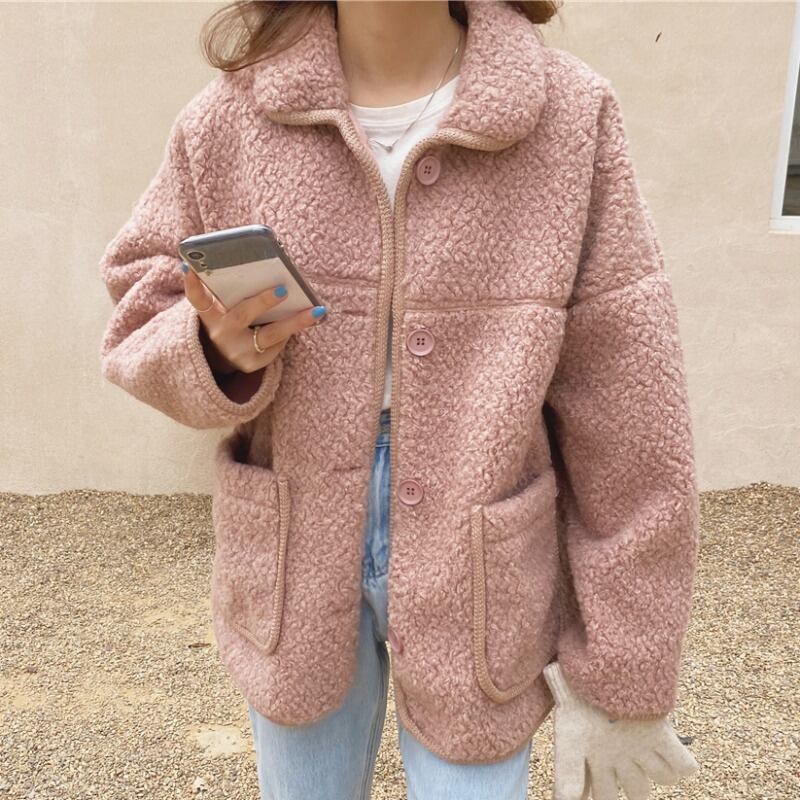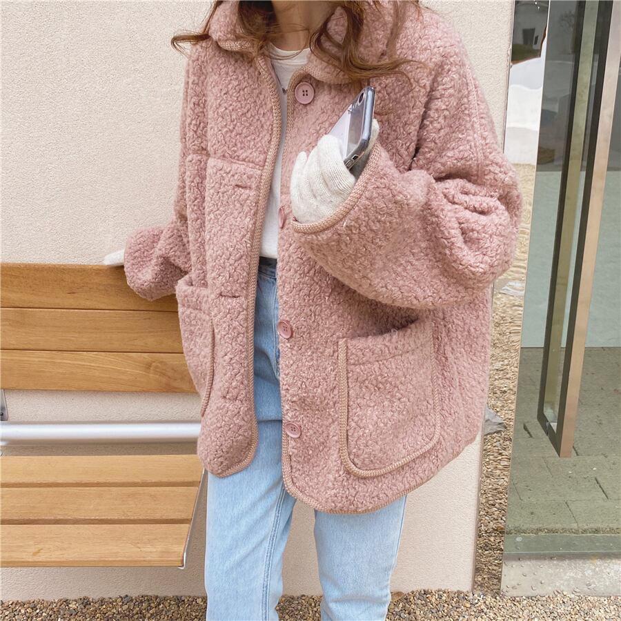 ファーウールコート オータムウィンターショートルーズ 秋物 冬物 韓国婦人9979544664