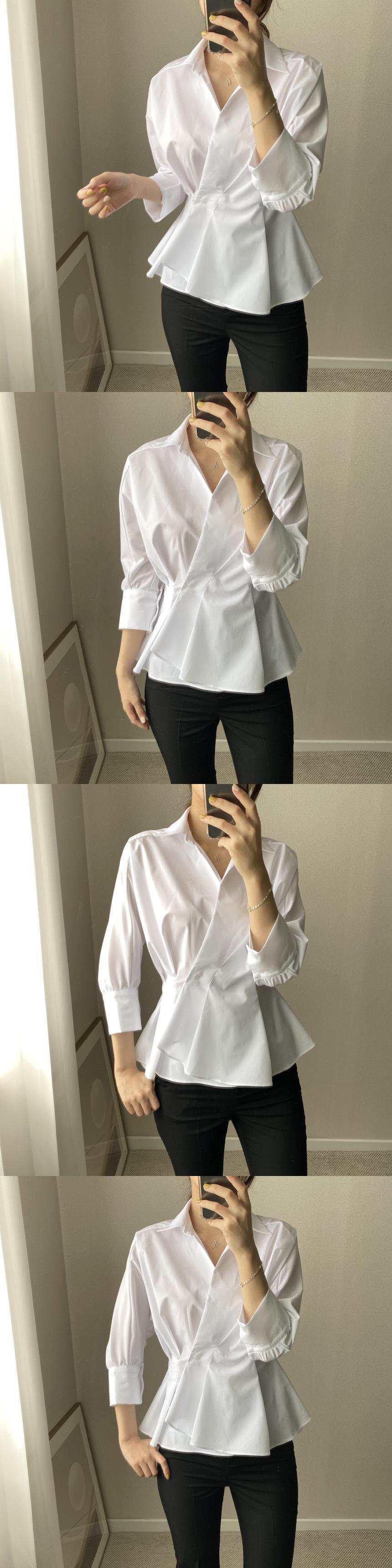 オータムスタイルホワイトシャツ ウェストブラウス 大きめサイズ 秋物 韓国婦人96670079102