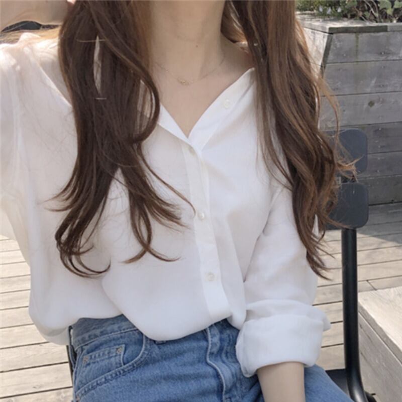 スプリングベーシックルーズカジュアルソリッド カラーシャツ トップス レディース ロング 春物 ソリッドカラー 韓国婦人55658391250