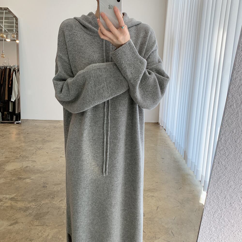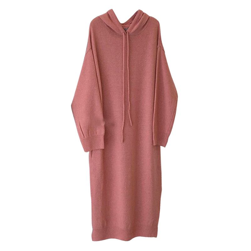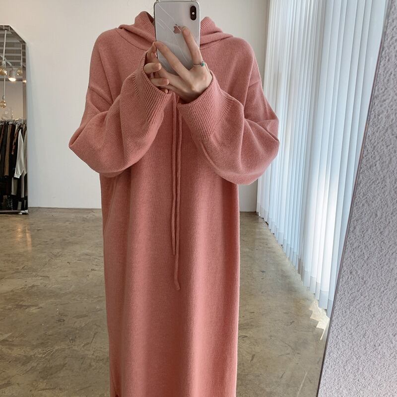 オータムウィンターフードセーター ニットロングスカート ドレス レディース 秋物 冬物 韓国婦人67076865927