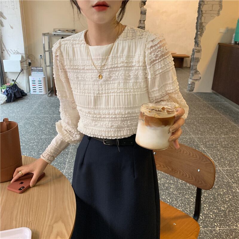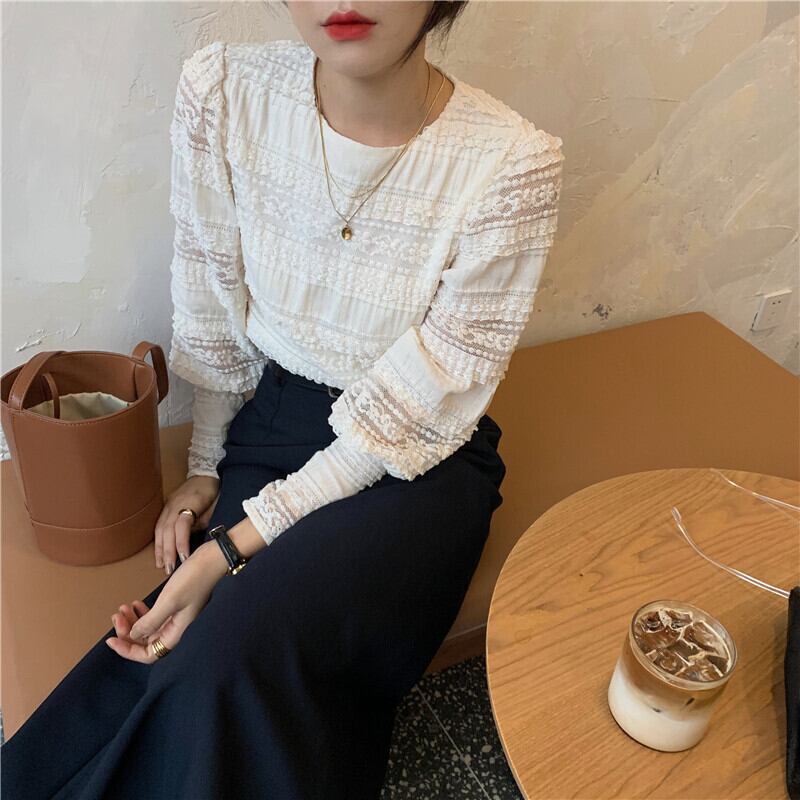 オータムスタンダードレースシャツ トップス スタイル ロング レトロ 秋物 韓国婦人27802496448