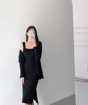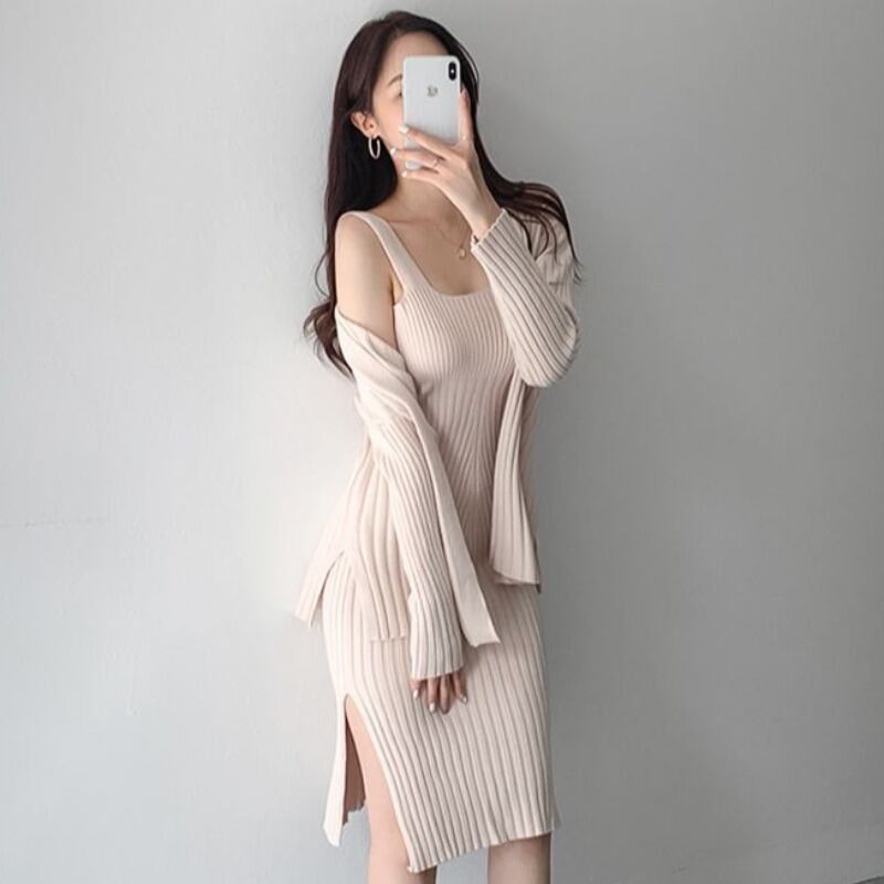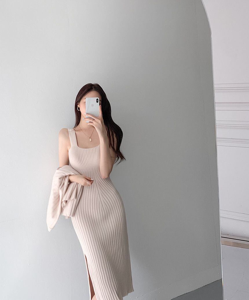 スプリングオータムウェストドレス ニットロングスカート 春物 秋物 韓国婦人41505260216