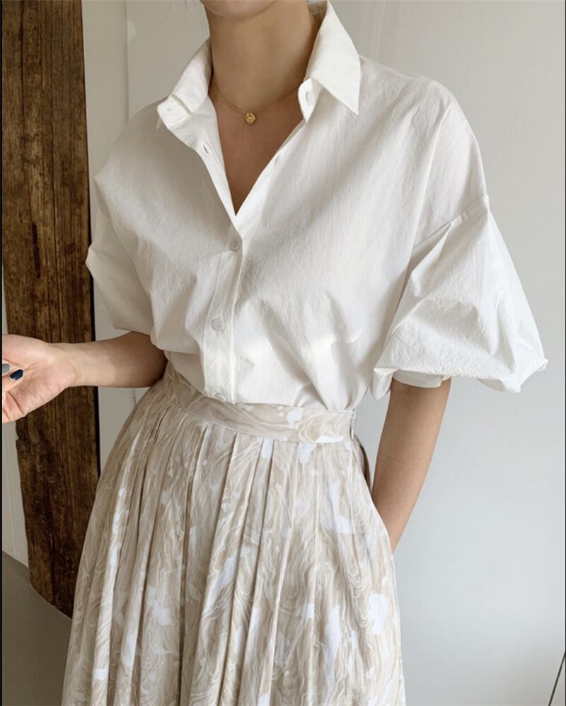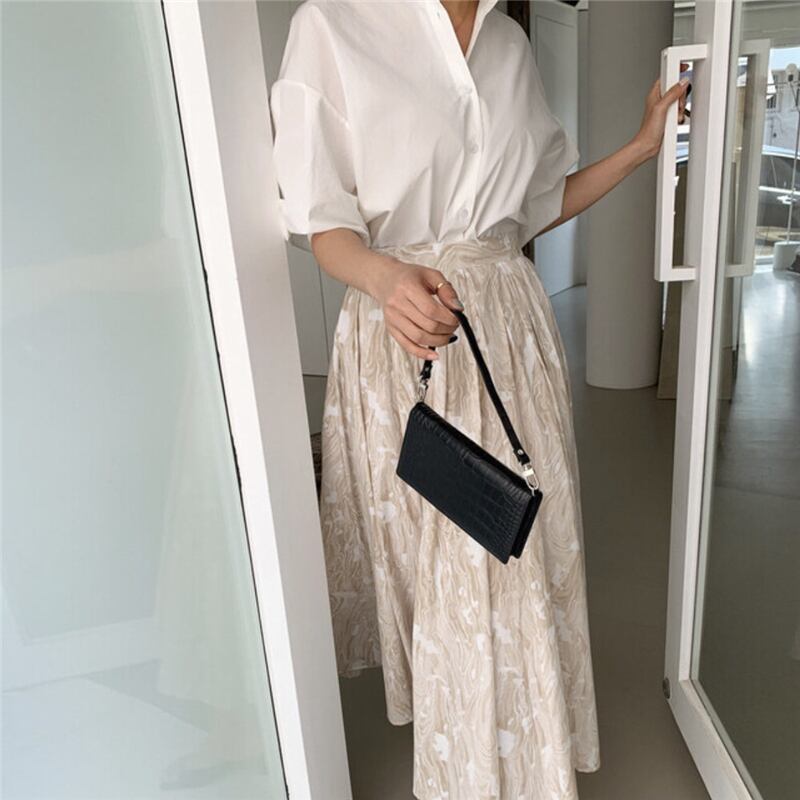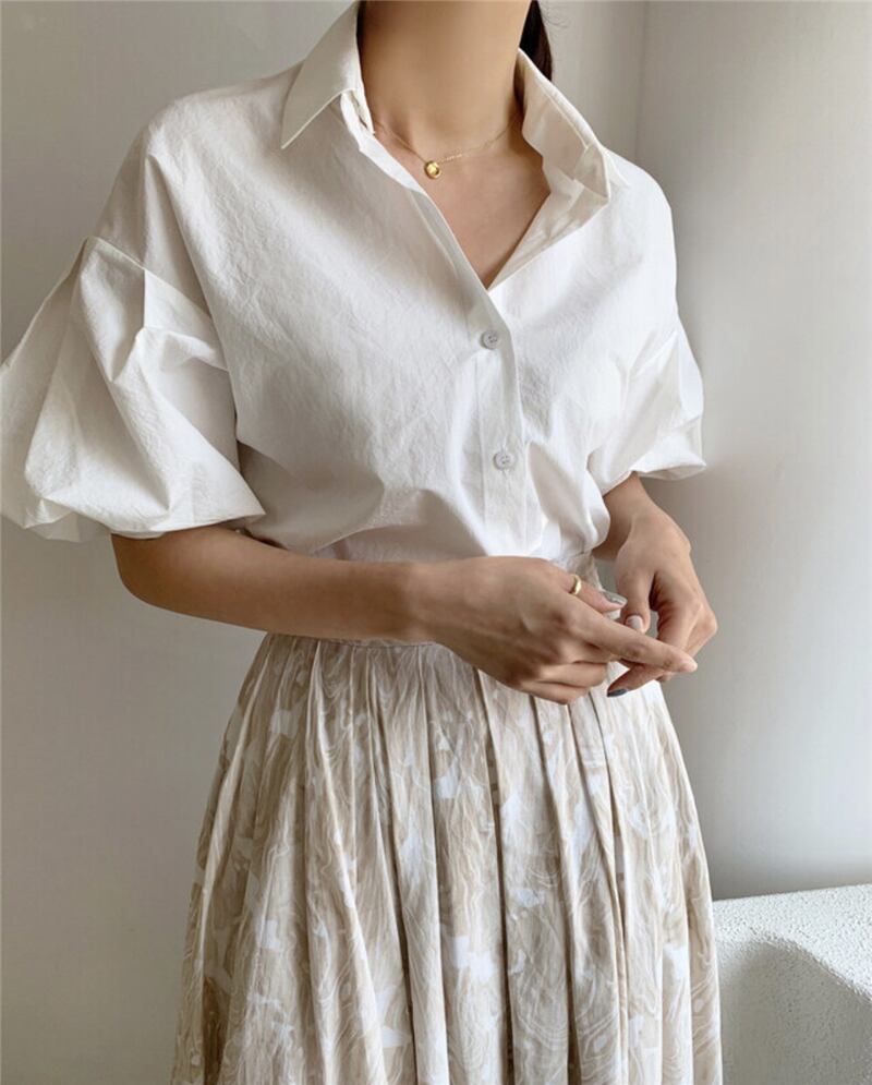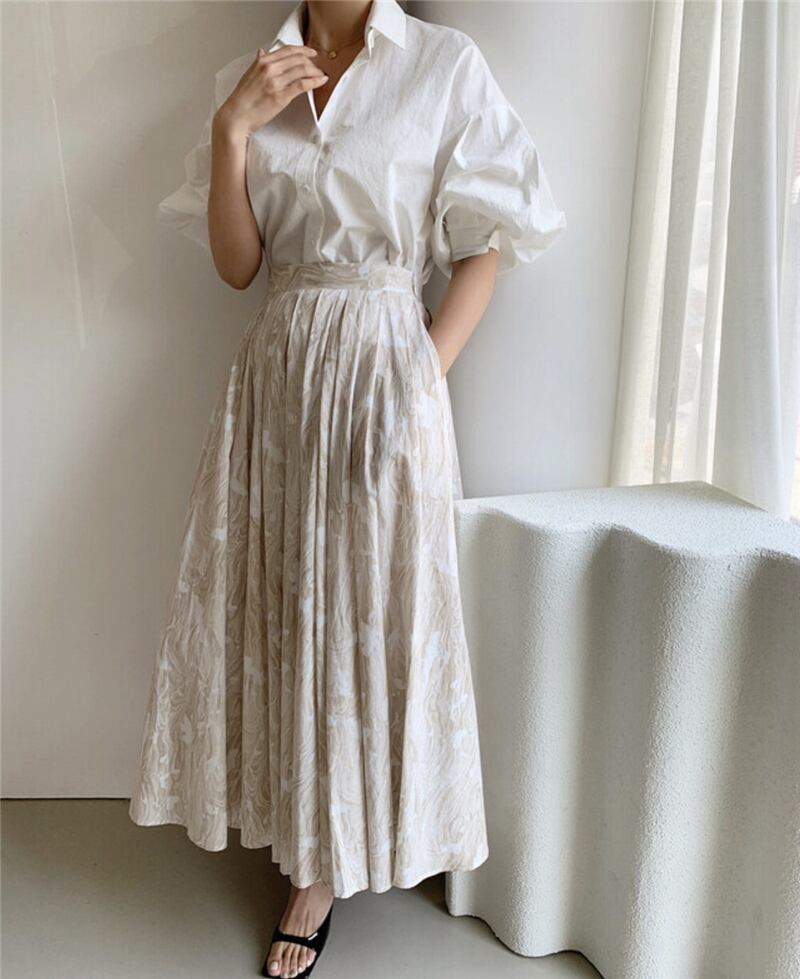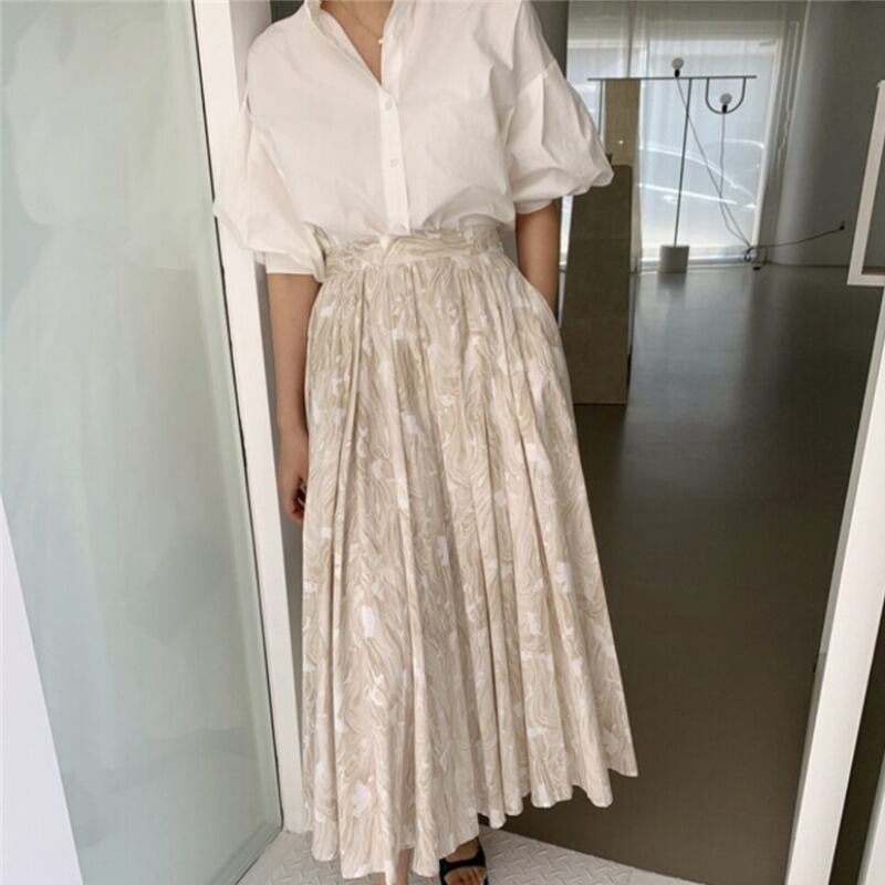 レディースサマースリーブシャツ スタンダードプリントスカート セット レトロ 夏物 韓国婦人52558582553