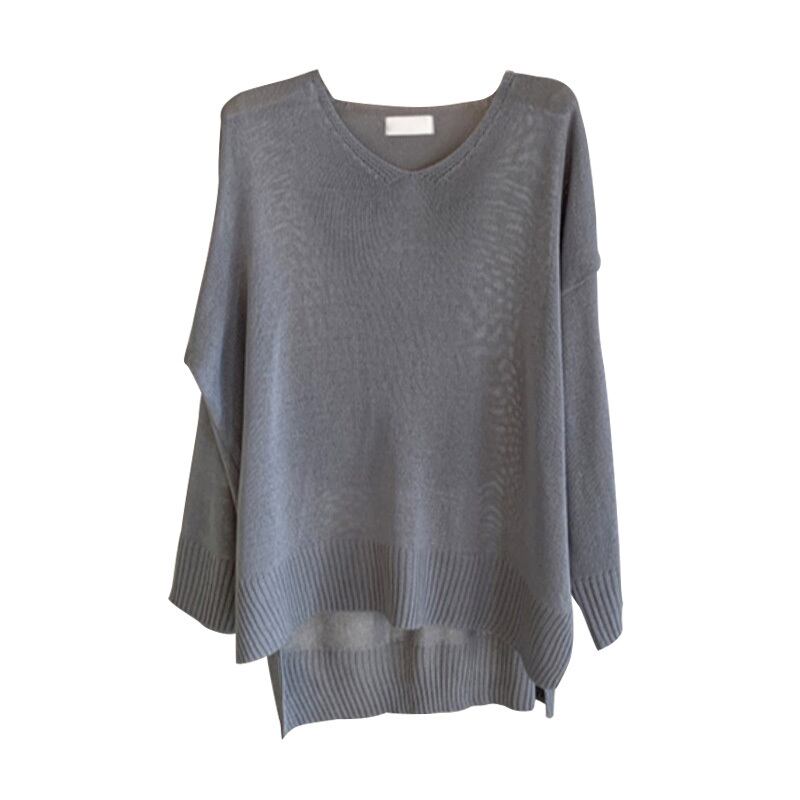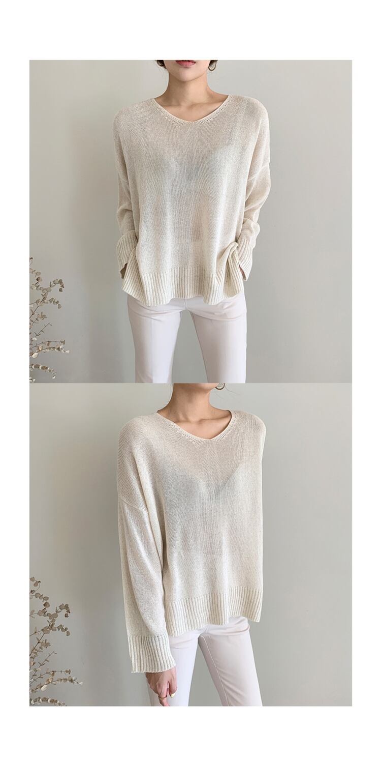 オータムルーズVネックソリッド カラーサイドスリットブラウス セーター レディース ロング 秋物 ソリッドカラー 韓国婦人61887059710