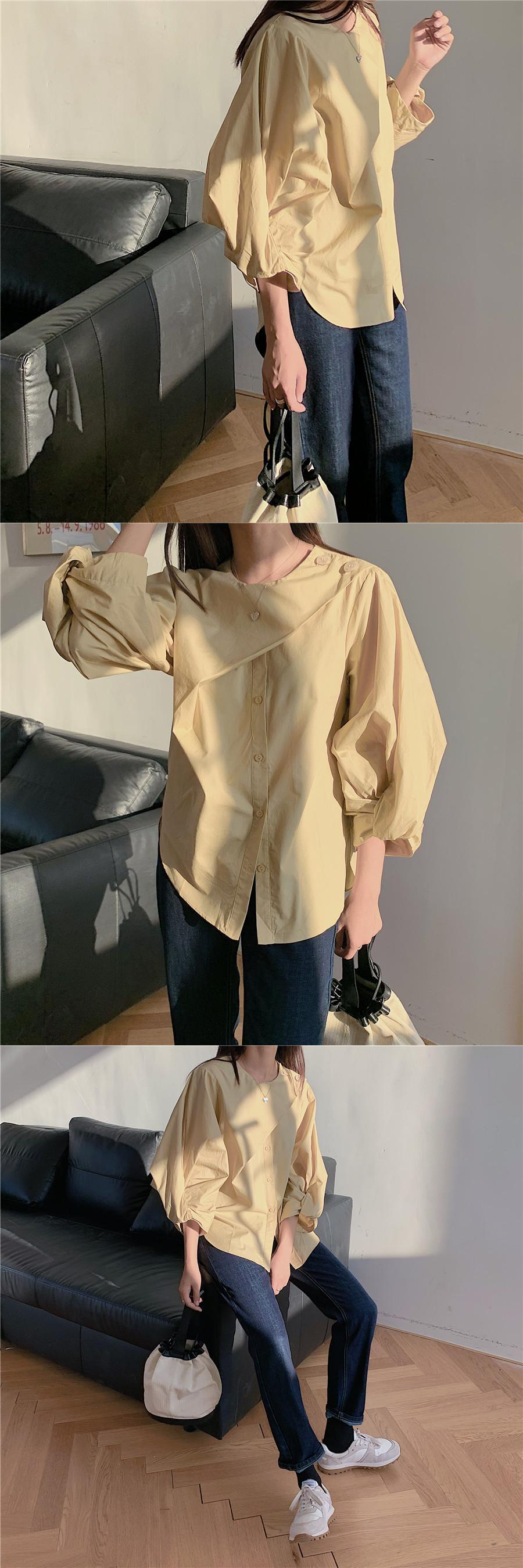 スリーブラウンドネックシャツ ブラウス スプリング 春物 Oネック 韓国婦人7572537031