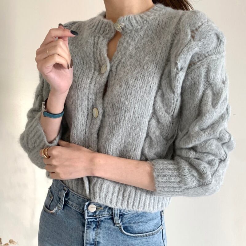 オータムウィンターラウンドネックショートカーディガンセーター レディース 秋物 冬物 Oネック 韓国婦人48963489036