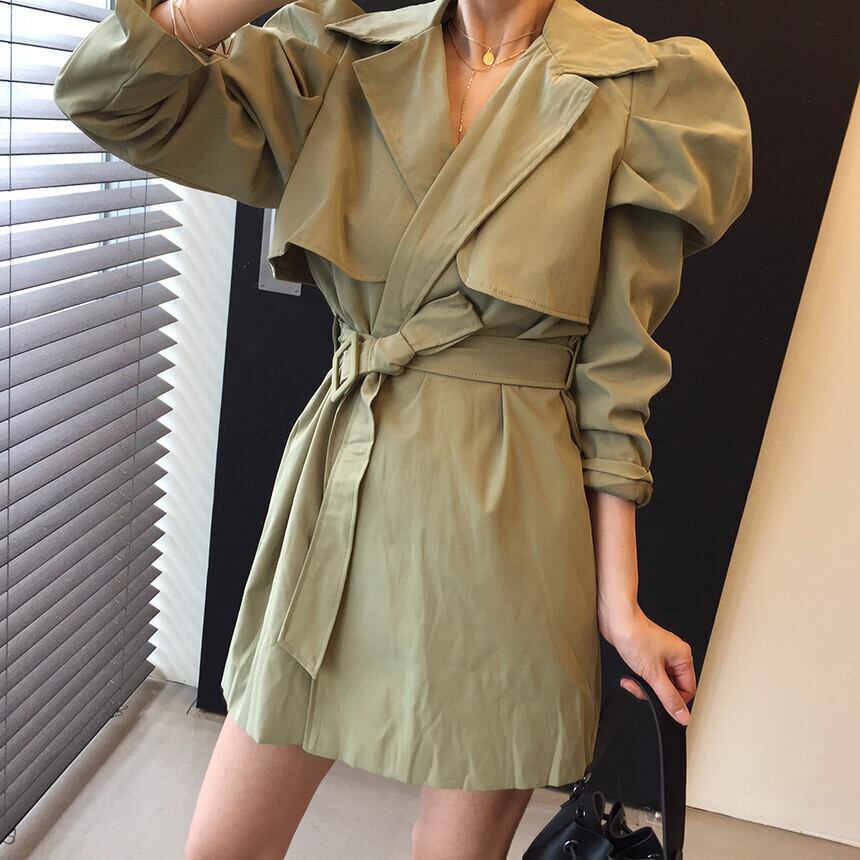 スプリングスリーブウェストショートドレス レース 春物 レースアップ 韓国婦人33614633337